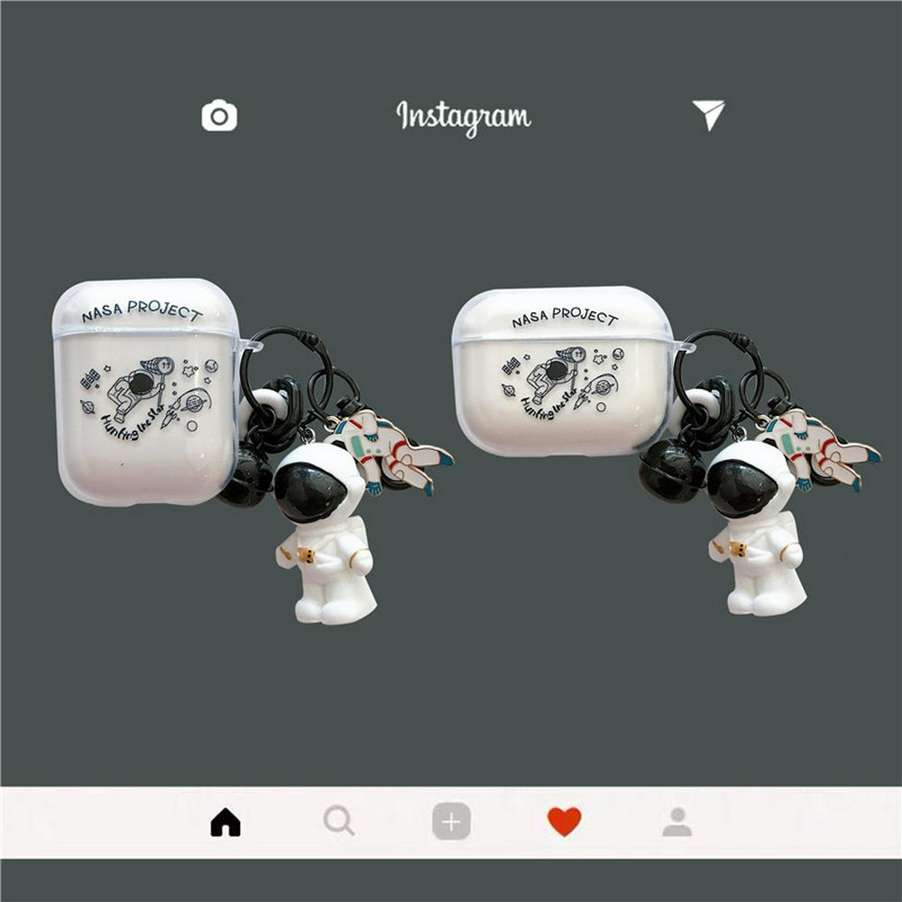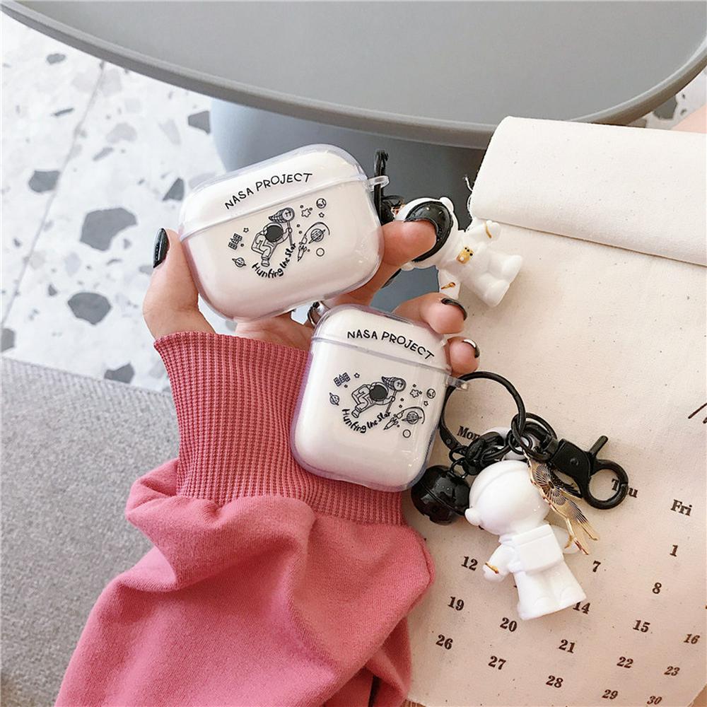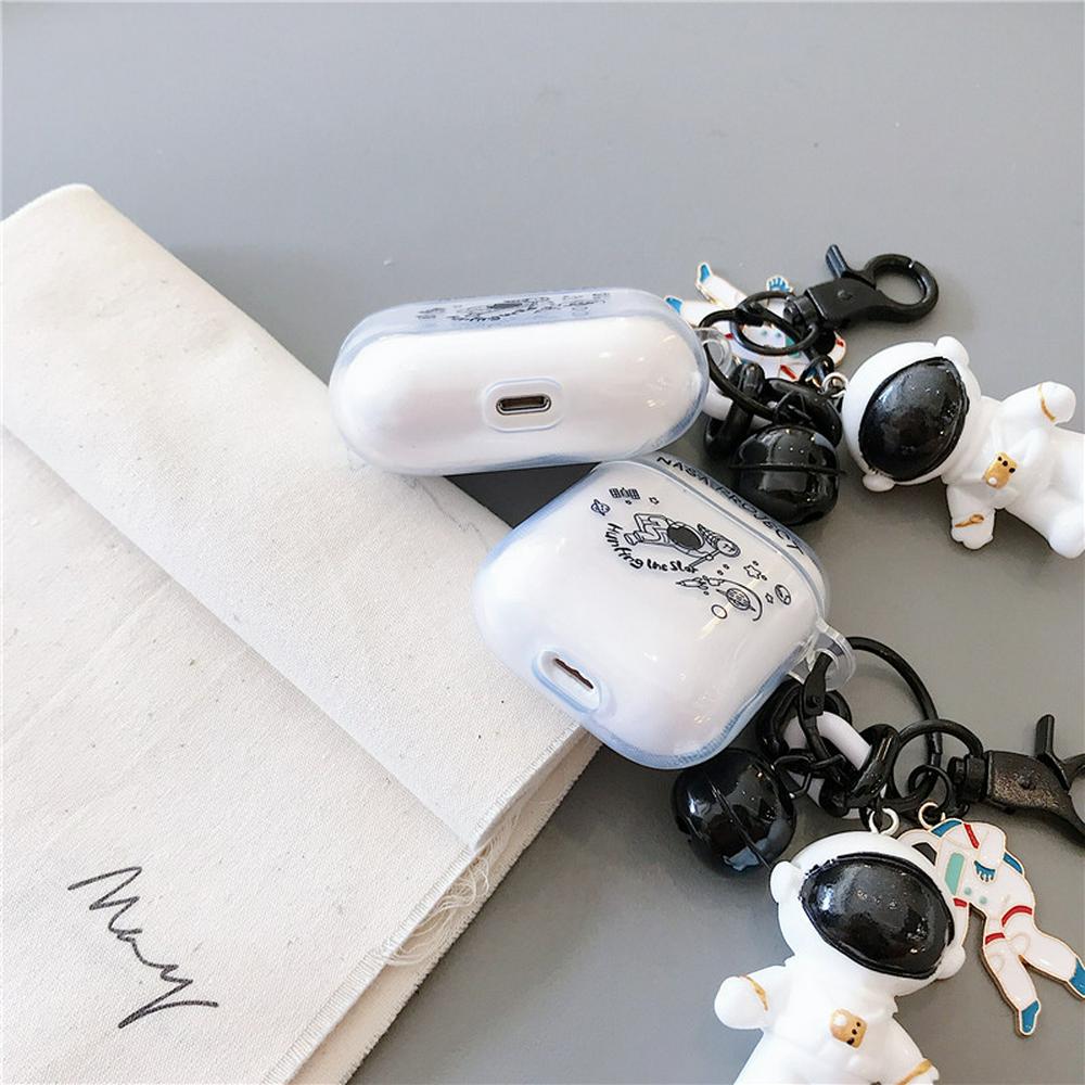 Astronaut Pattern with Pendant Transparent TPU Protective Bluetooth Earphone Charging Case Cover Skin for Apple Airpods 1 / 2