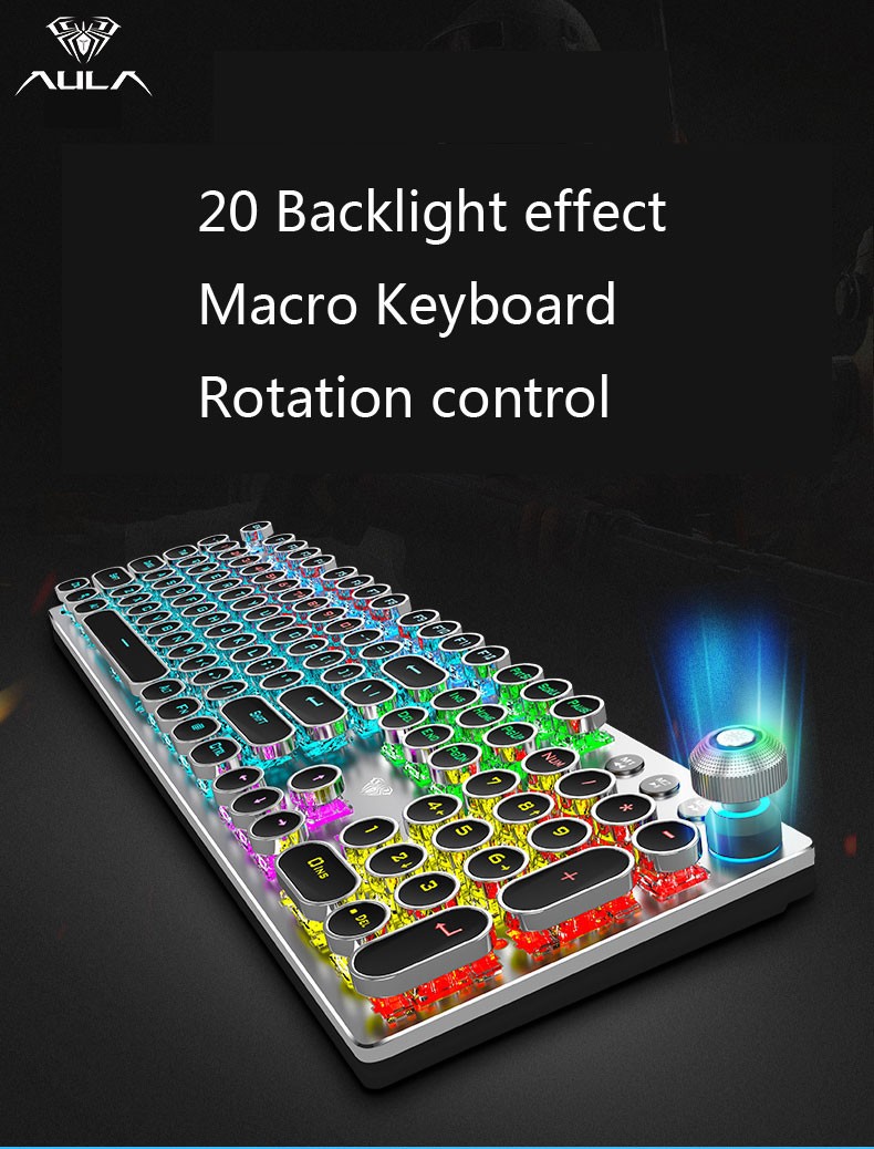 AULA F2088 Real Mechanical Keyboard External Steampunk Metal Gaming Game l Peripheral Keyboard