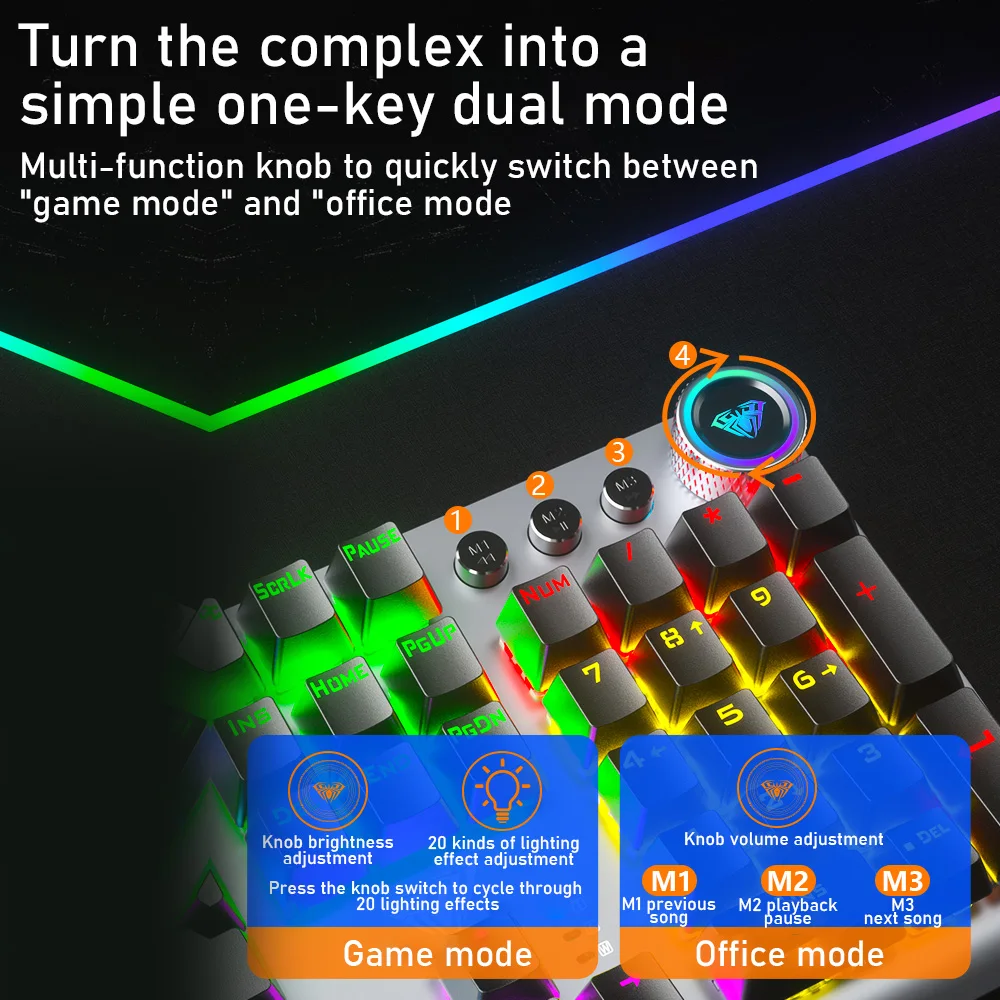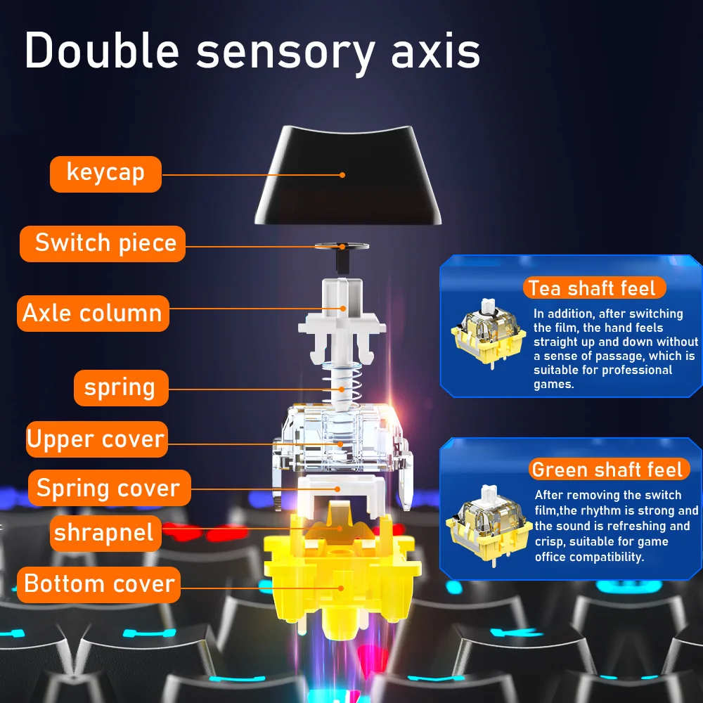 -4.Using mechanical blue-axis switch design, 50 million keystrokes life, durable and excellent hand feeling.