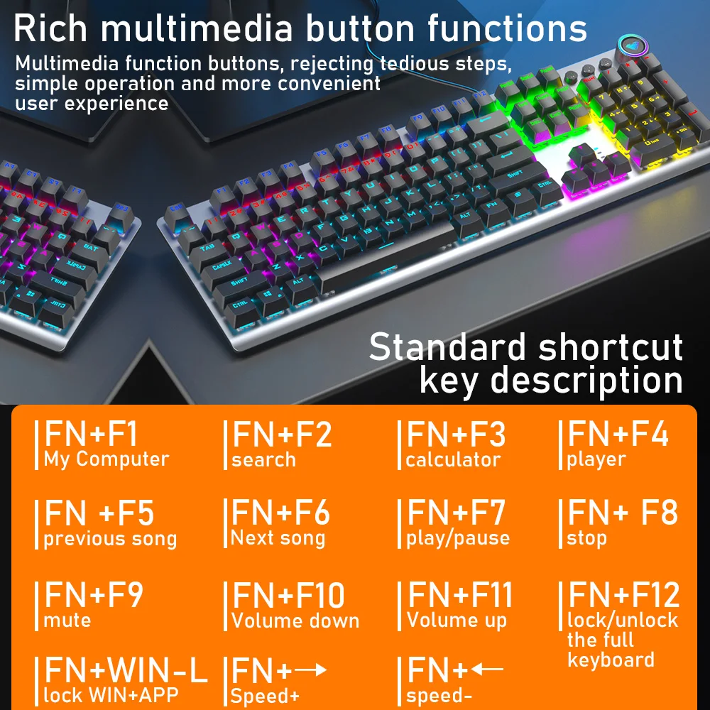 -6.The keyboard has a humanized design, and a series of commonly used shortcut function keys are added in conjunction with Fn.