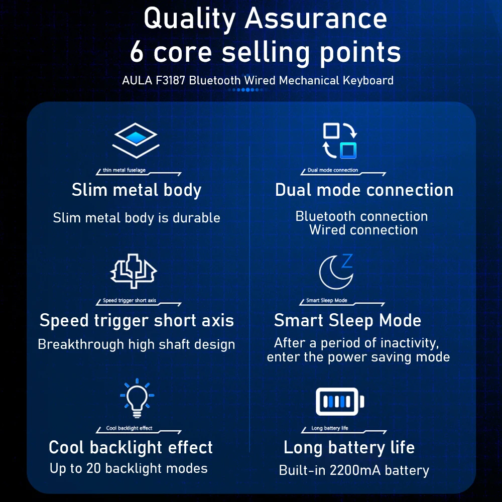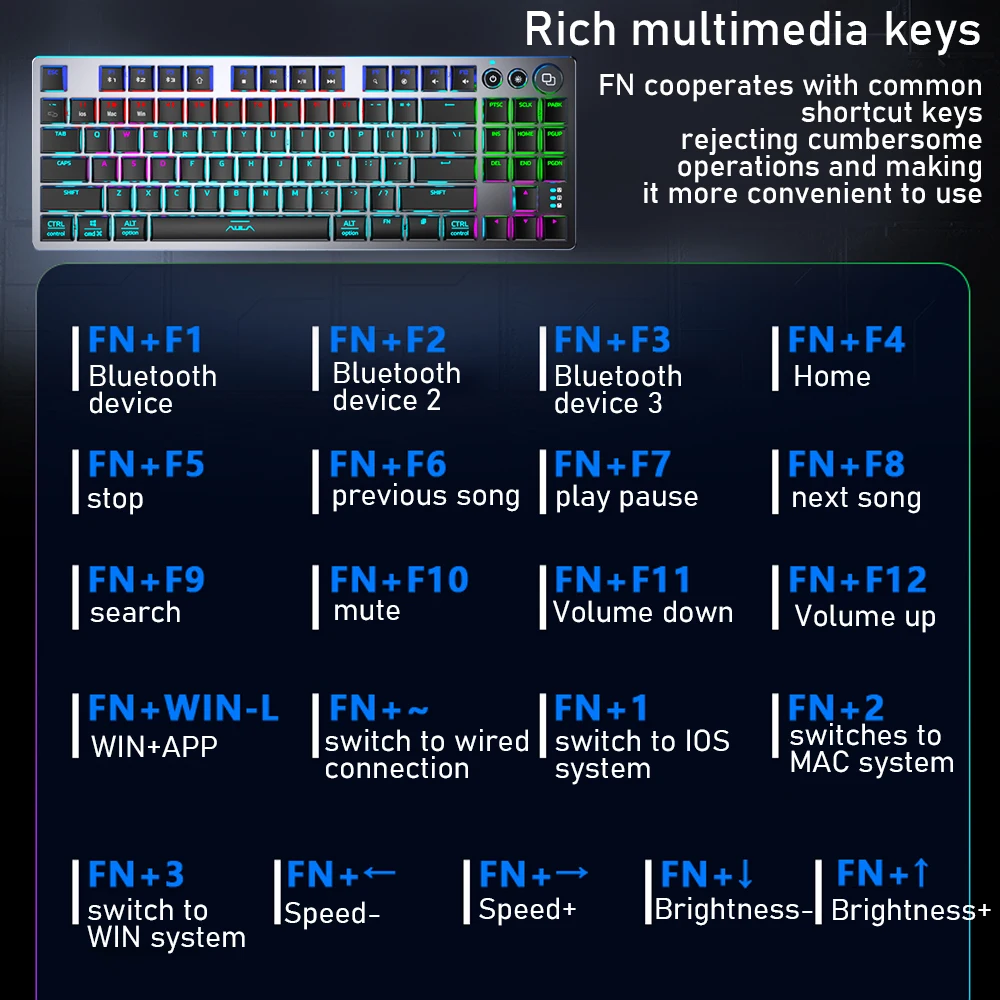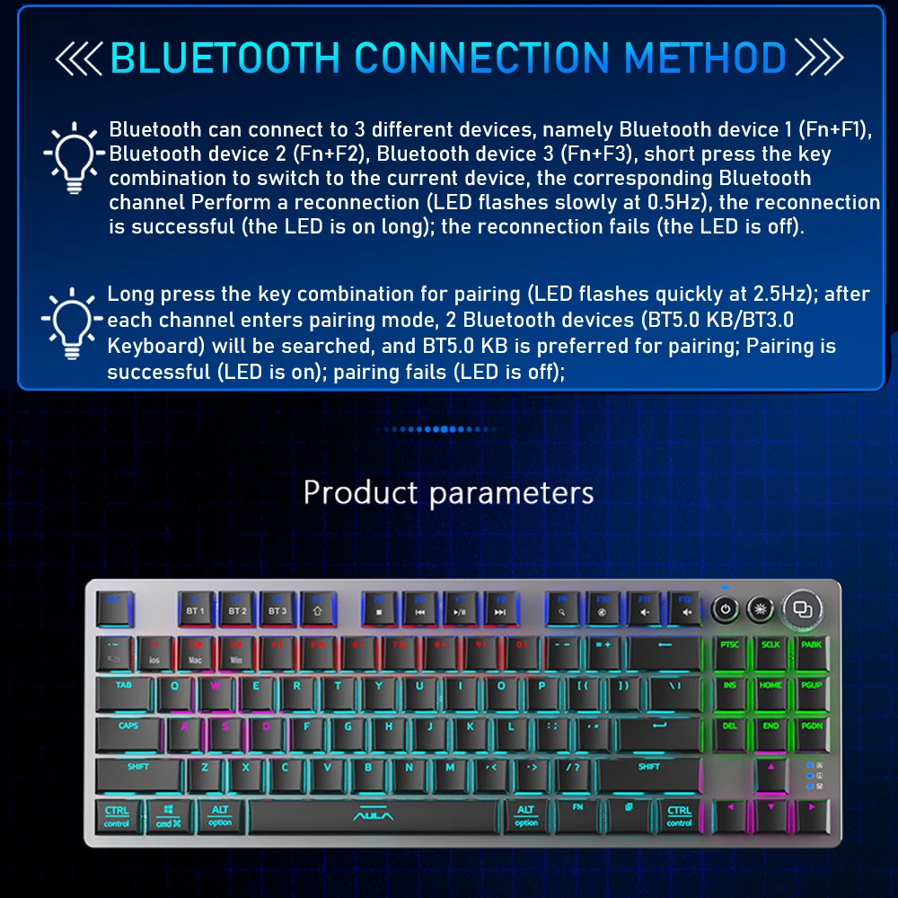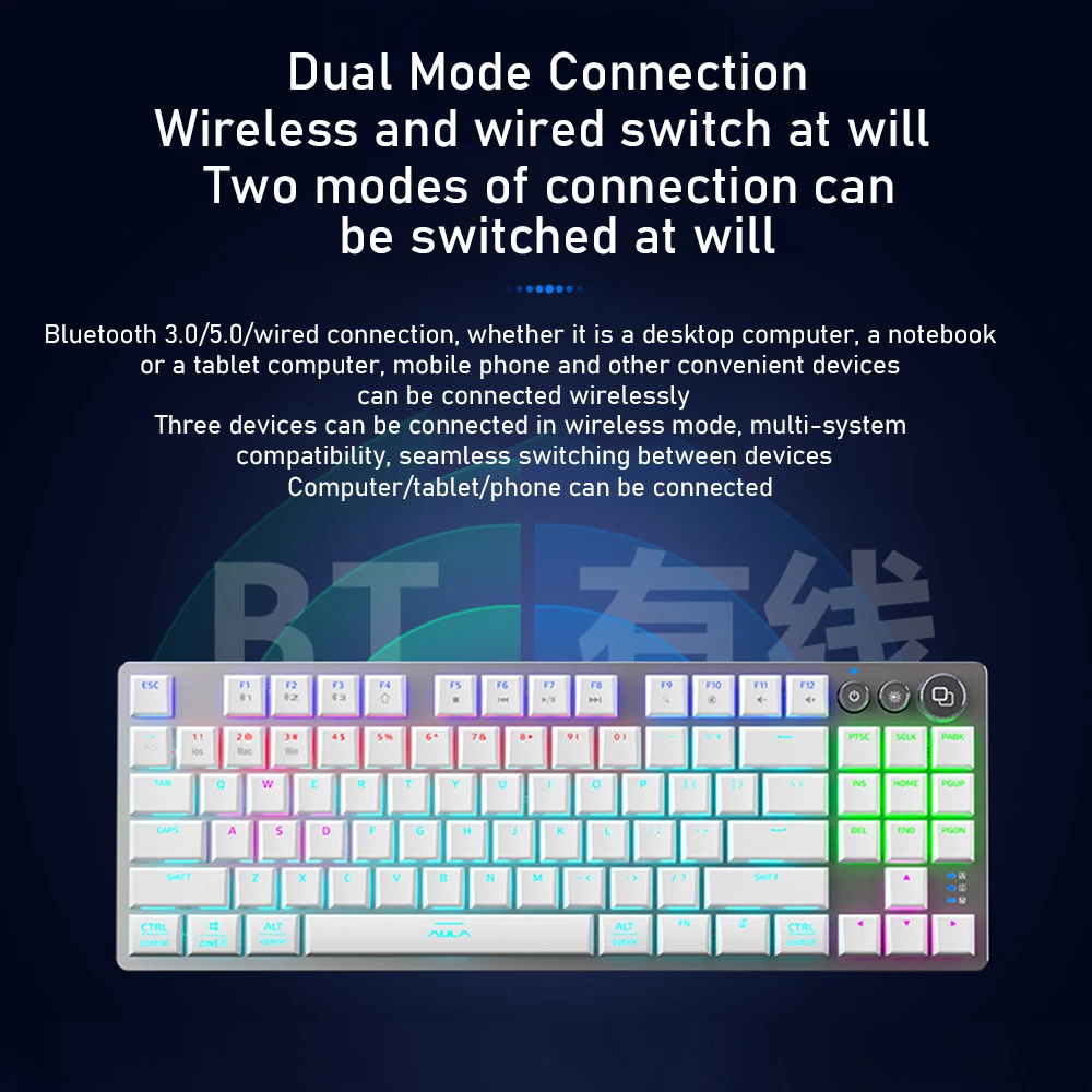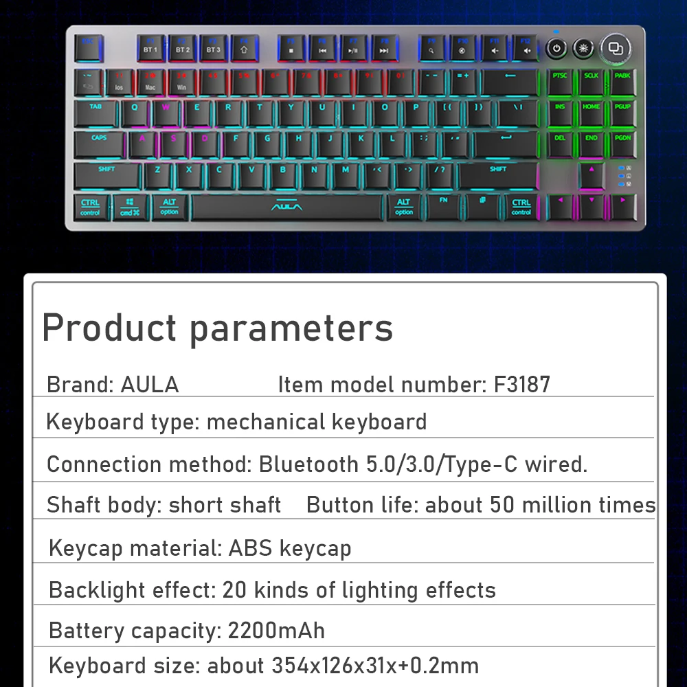 -Item Type: Support Bluetooth 5.0/3.0/Type-C Wired/2.4G Wireless Mechanical Keyboard
