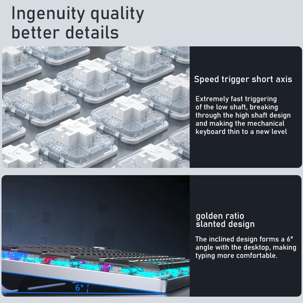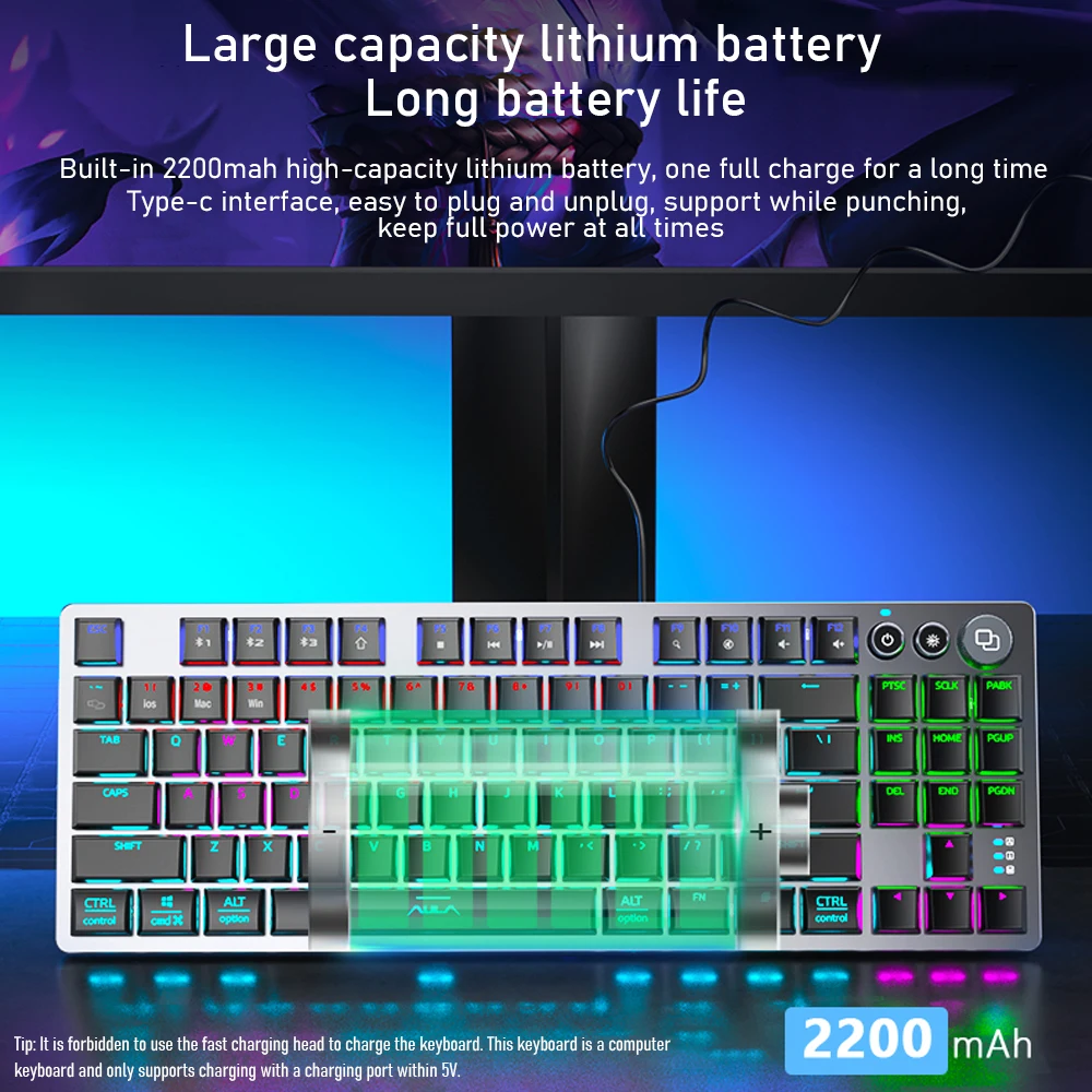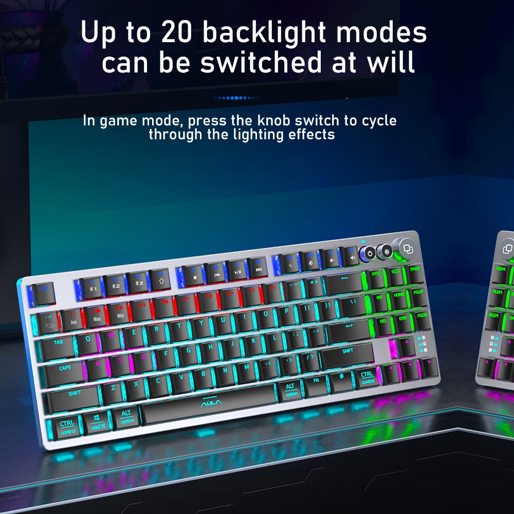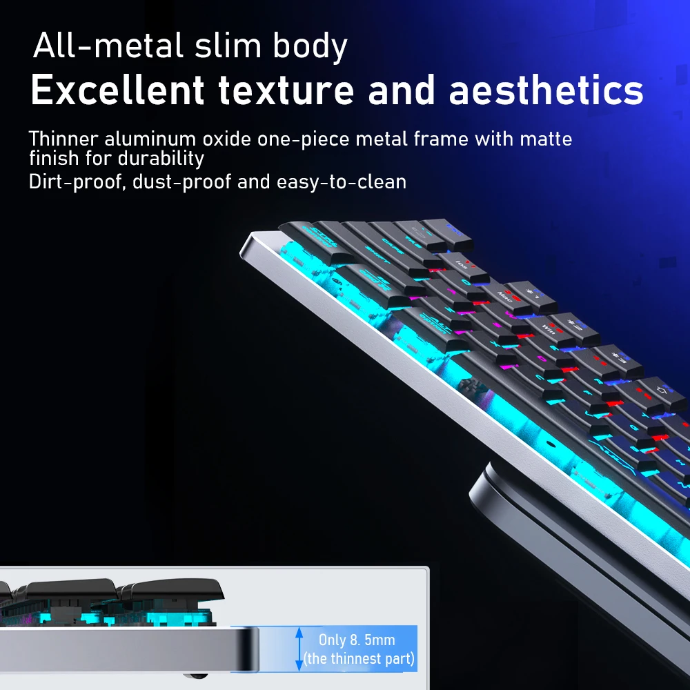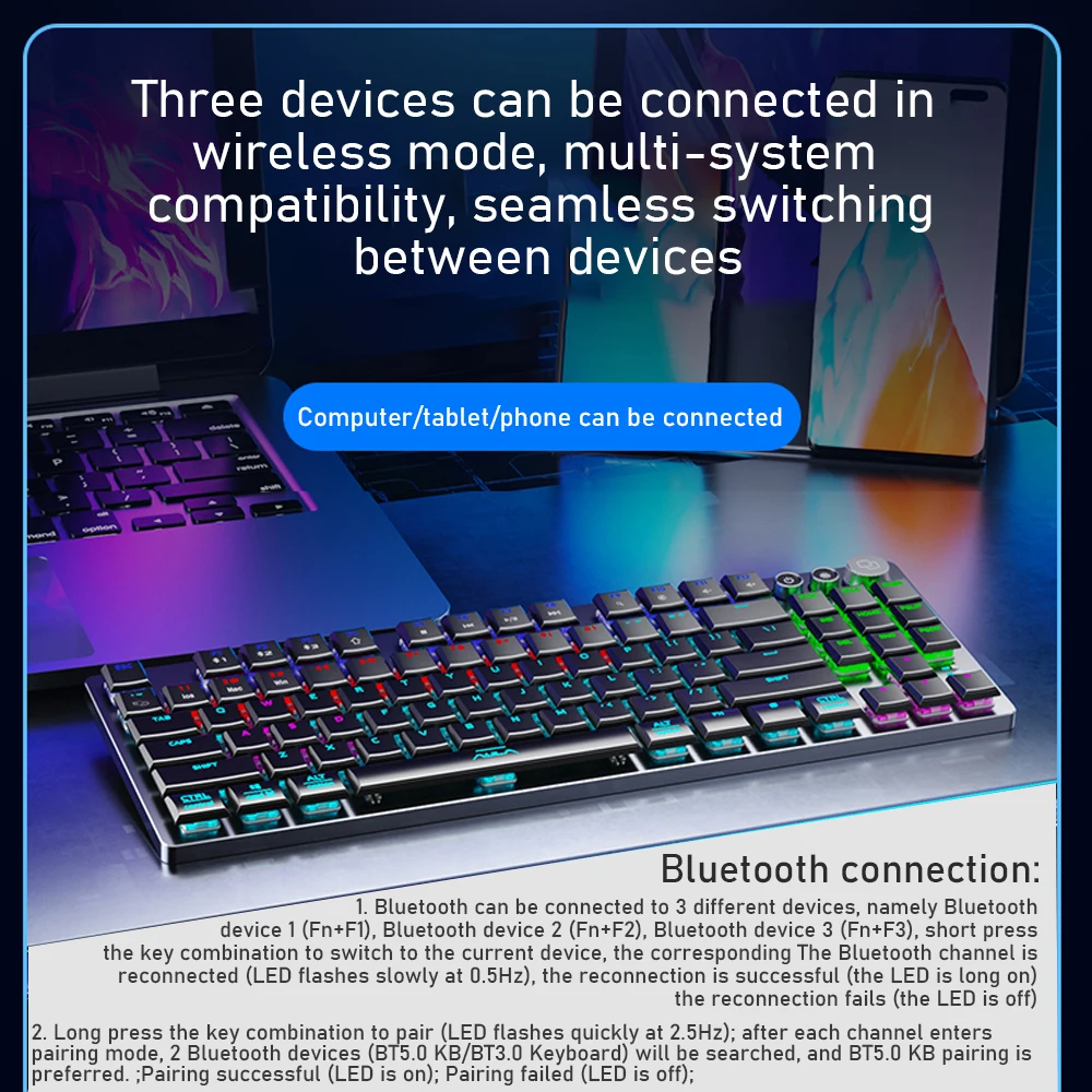 Ultra Thin Mechanical Keyboard 87 keys Support Bluetooth 5.0 / Type-C Wired /2.4G Wireless