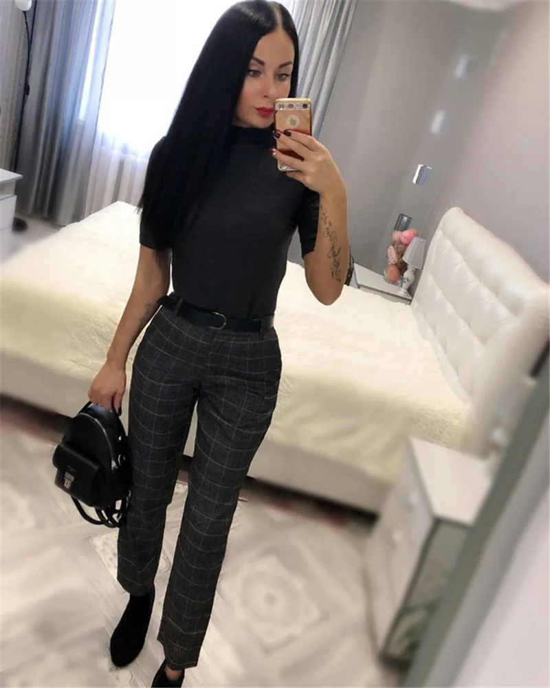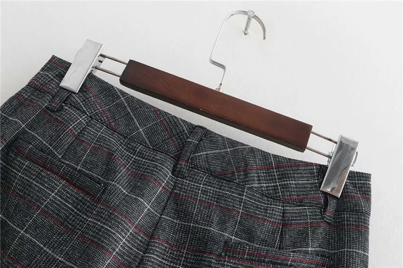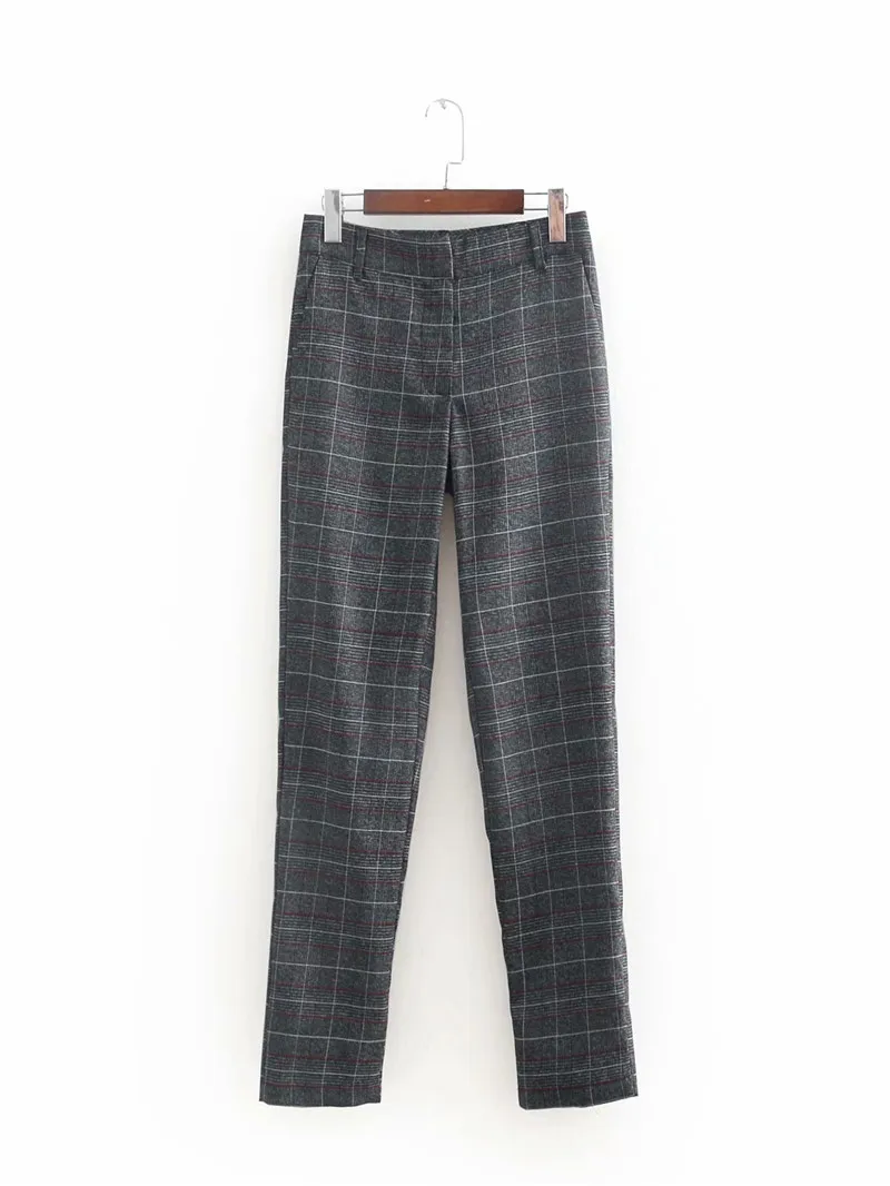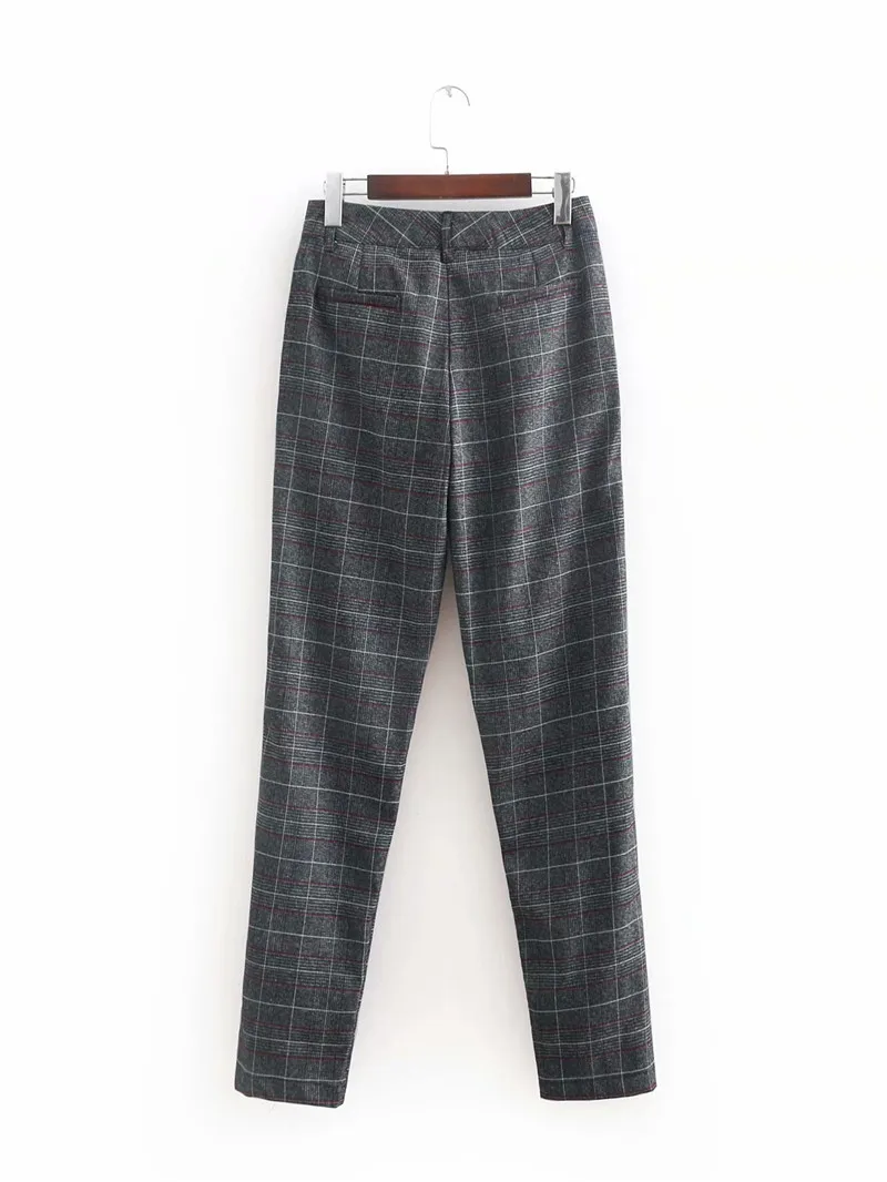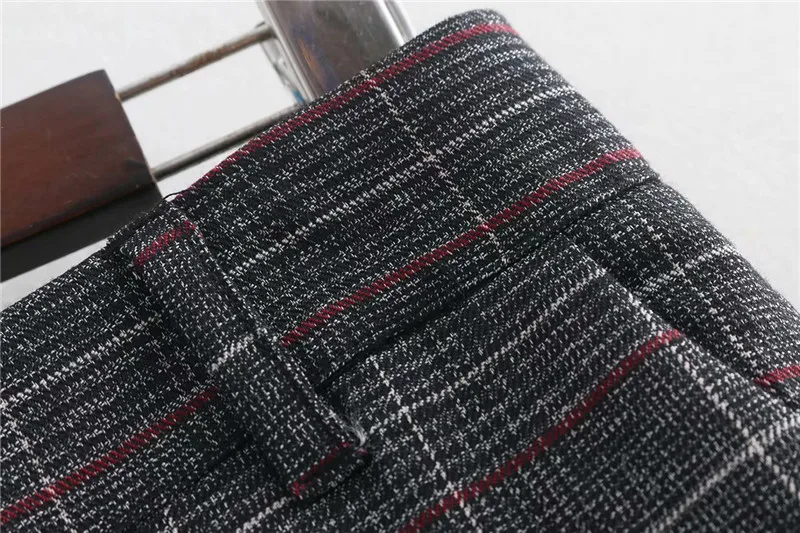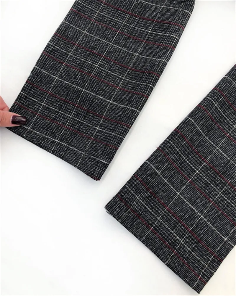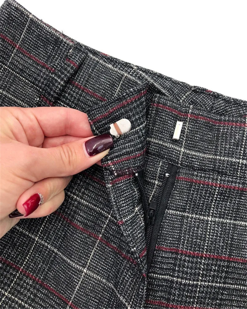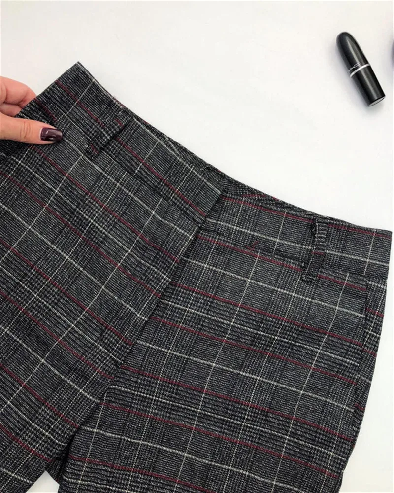 Autumn Spring Women Plover Case Pants Elegant OL Work Suit Pants Woolen Blends Slim Plaid Pants