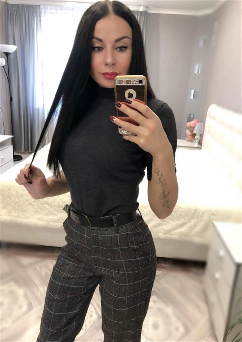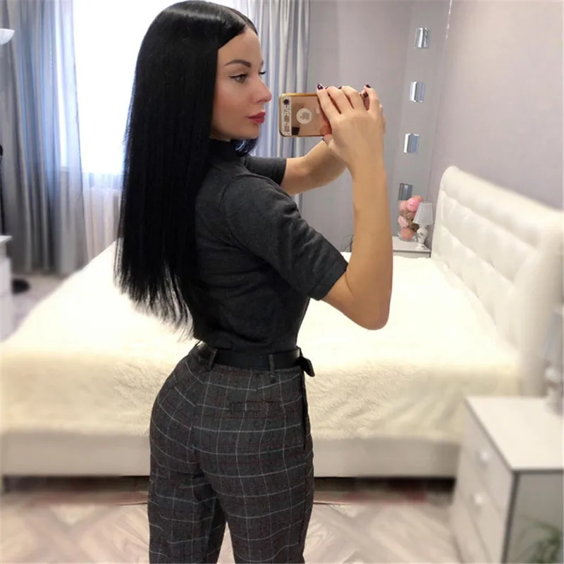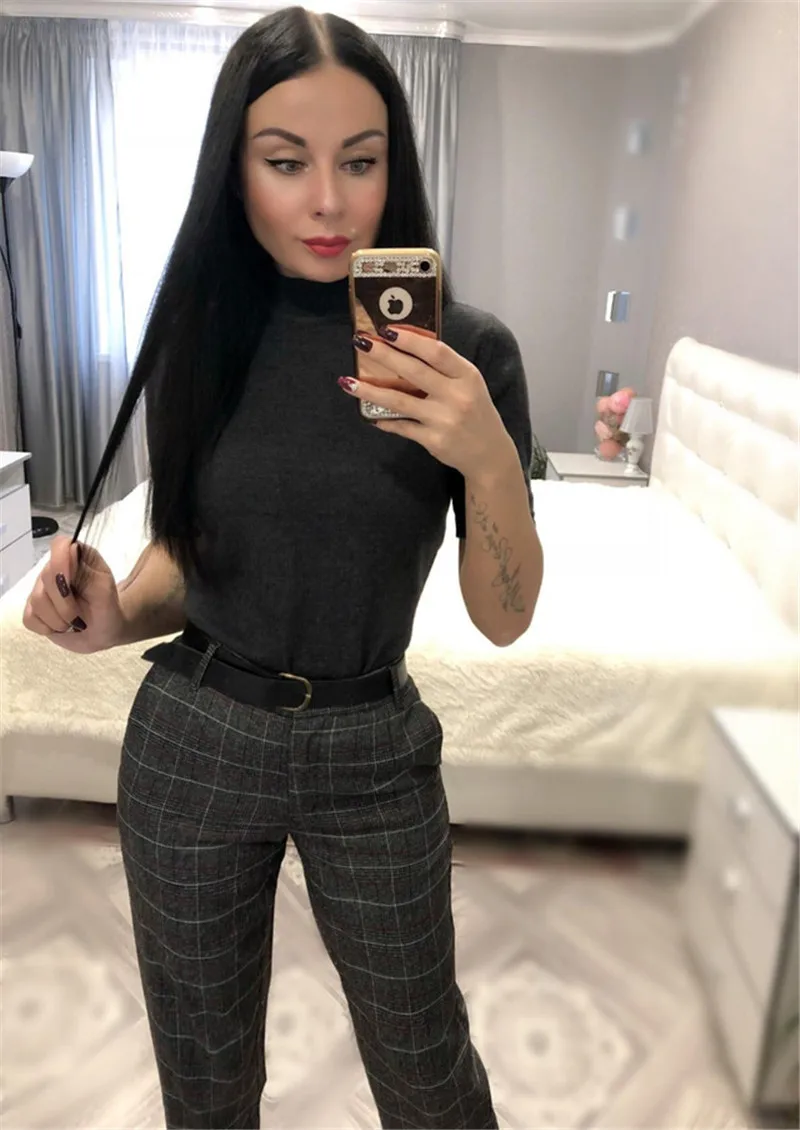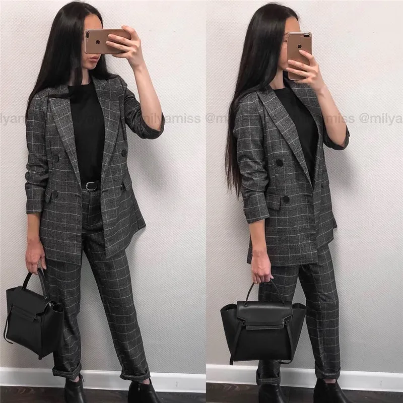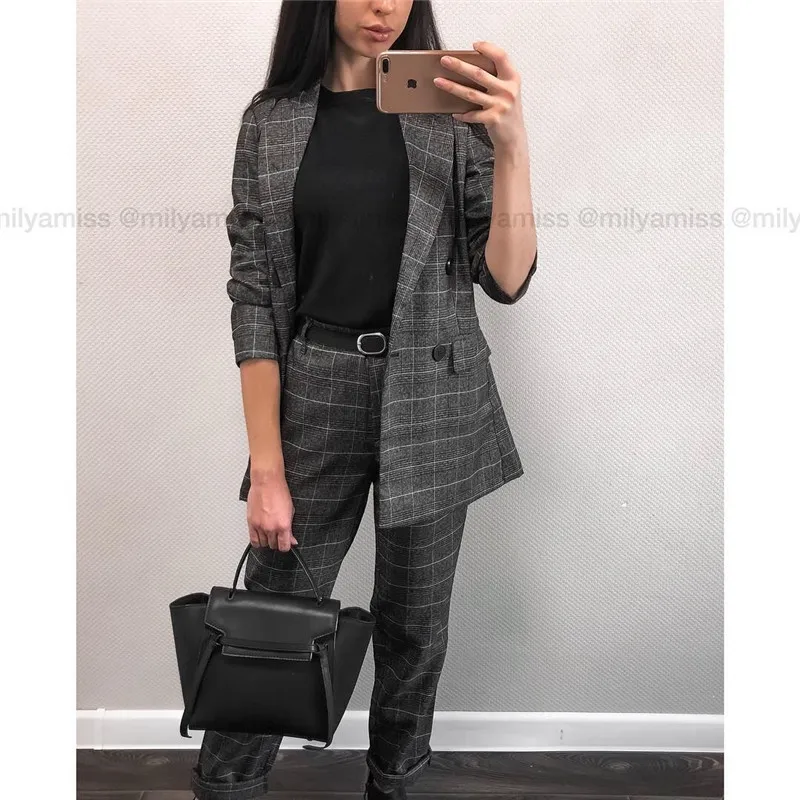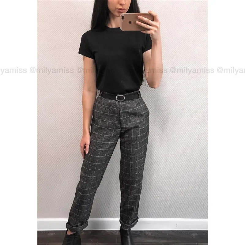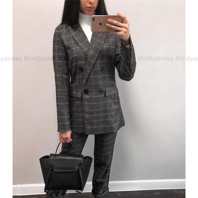 Autumn Spring Women Plover Case Pants Elegant OL Work Suit Pants Woolen Blends Slim Plaid Pants