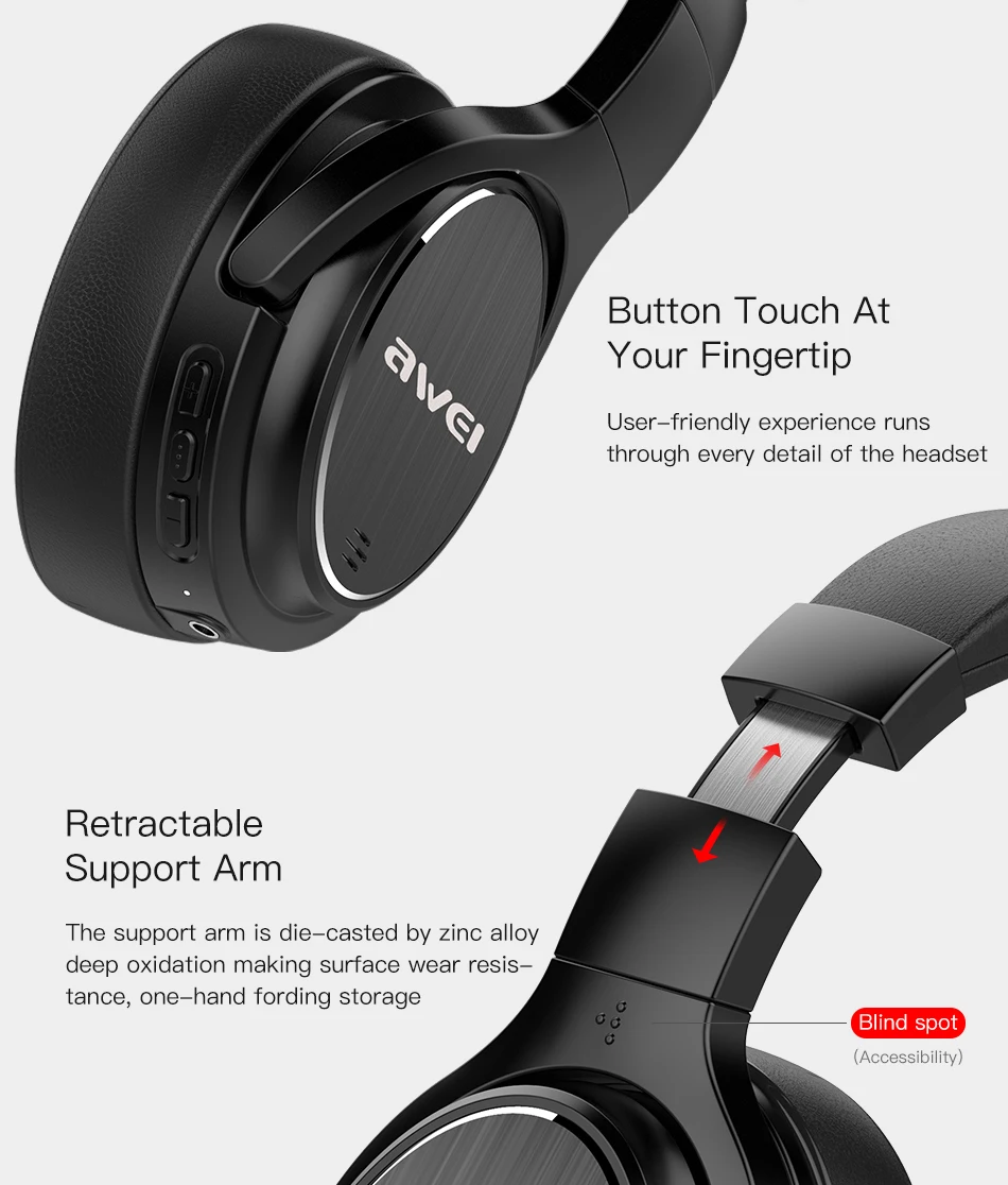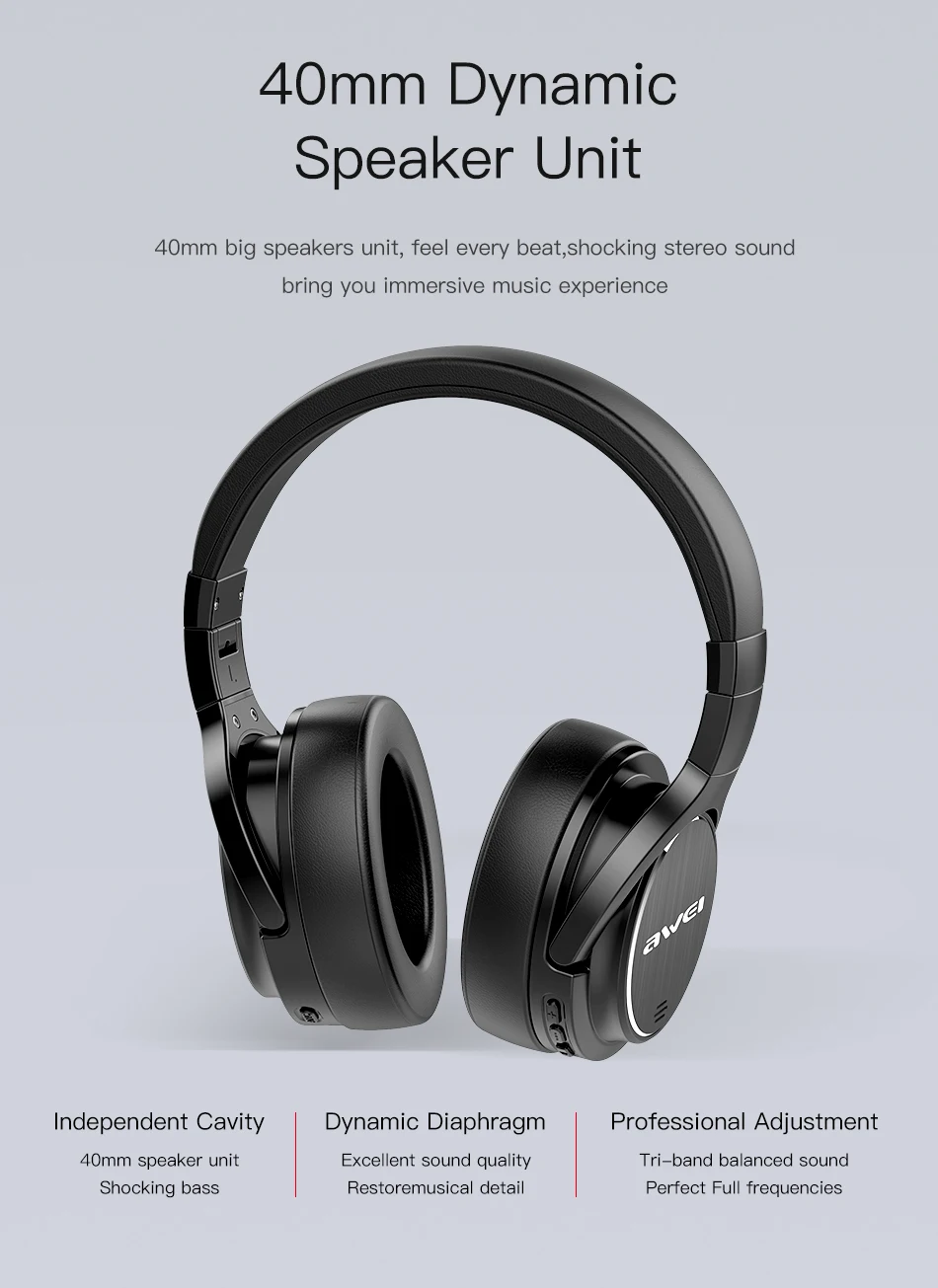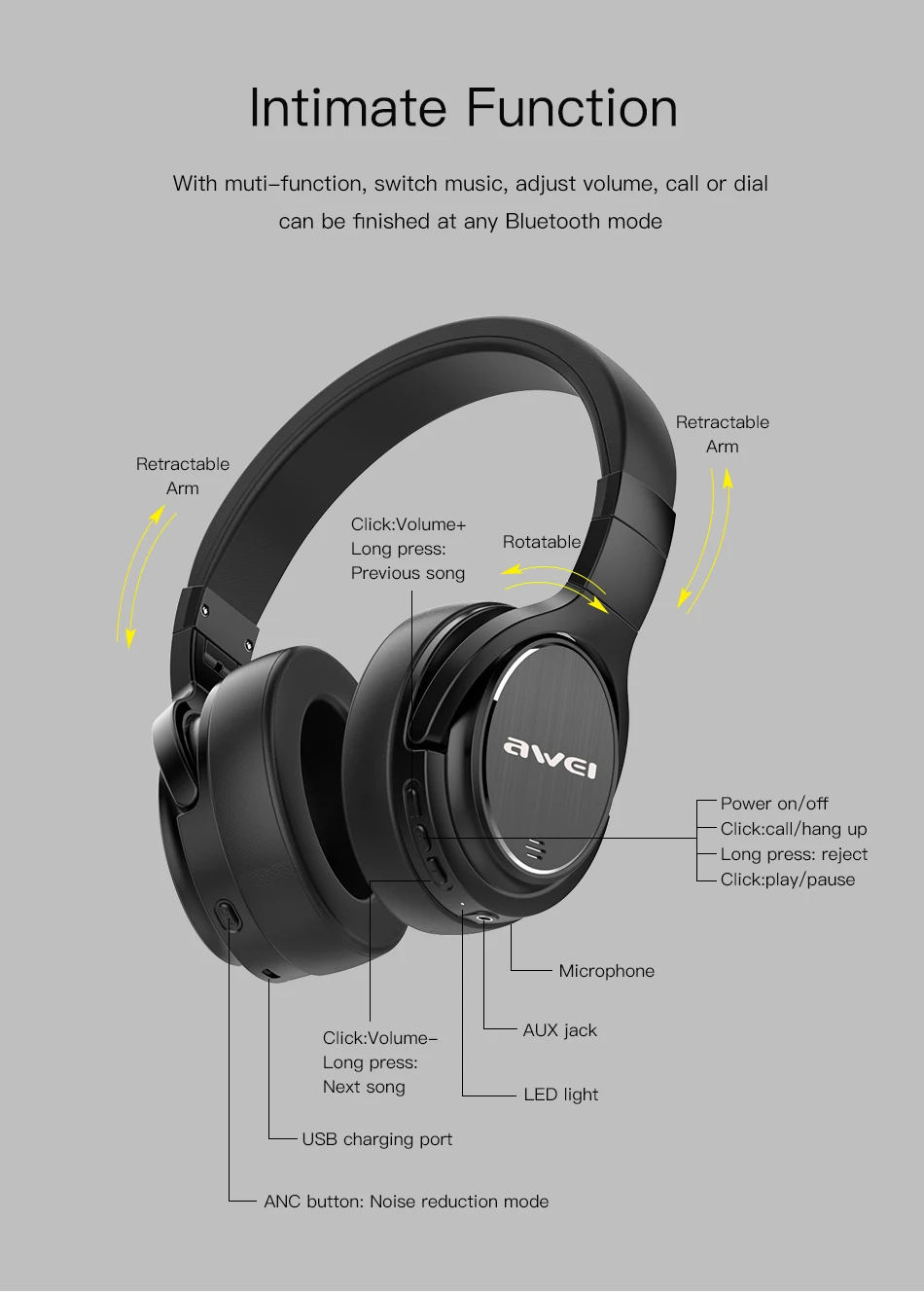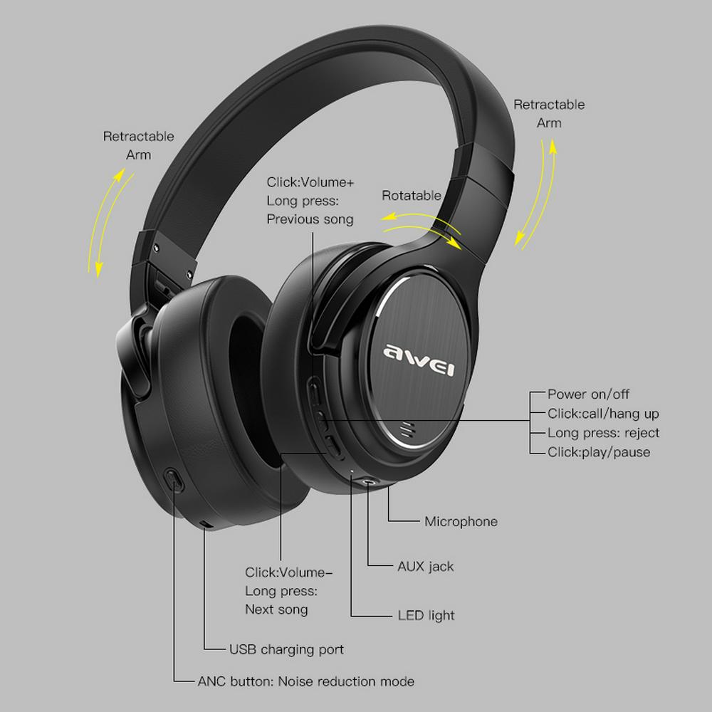 AWei A950BL Wireless Headphones Bluetooth Headset Noise Cancellation Games Earphone