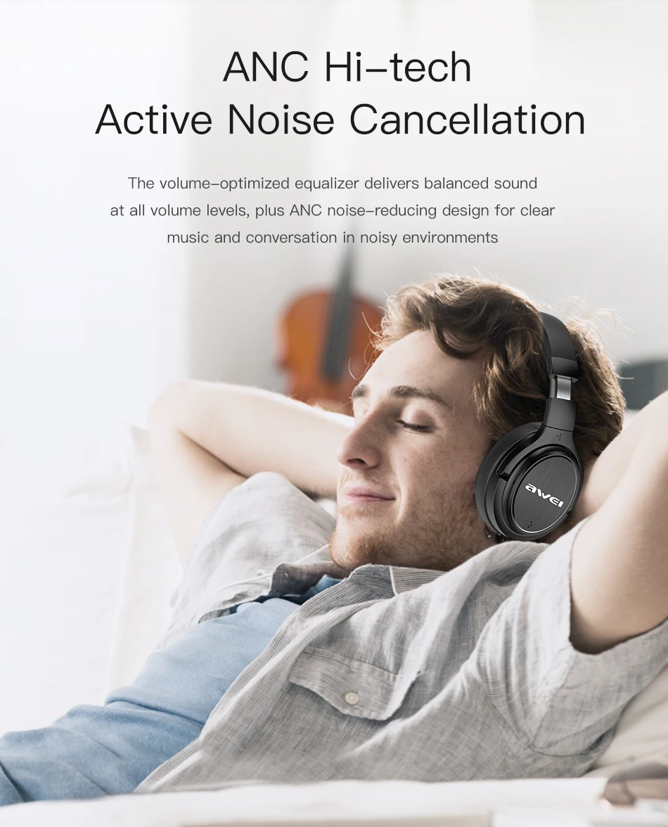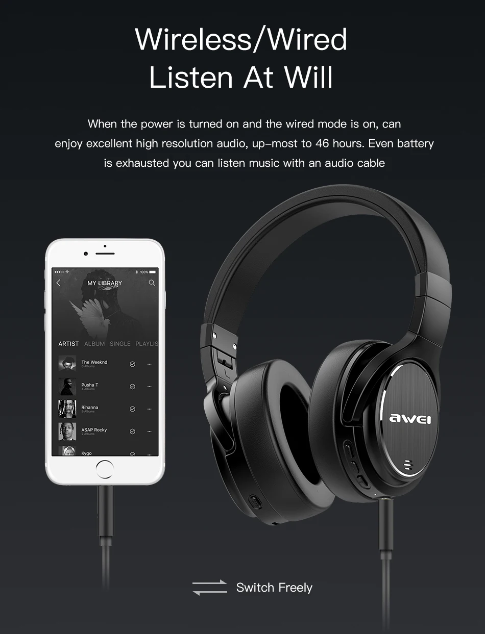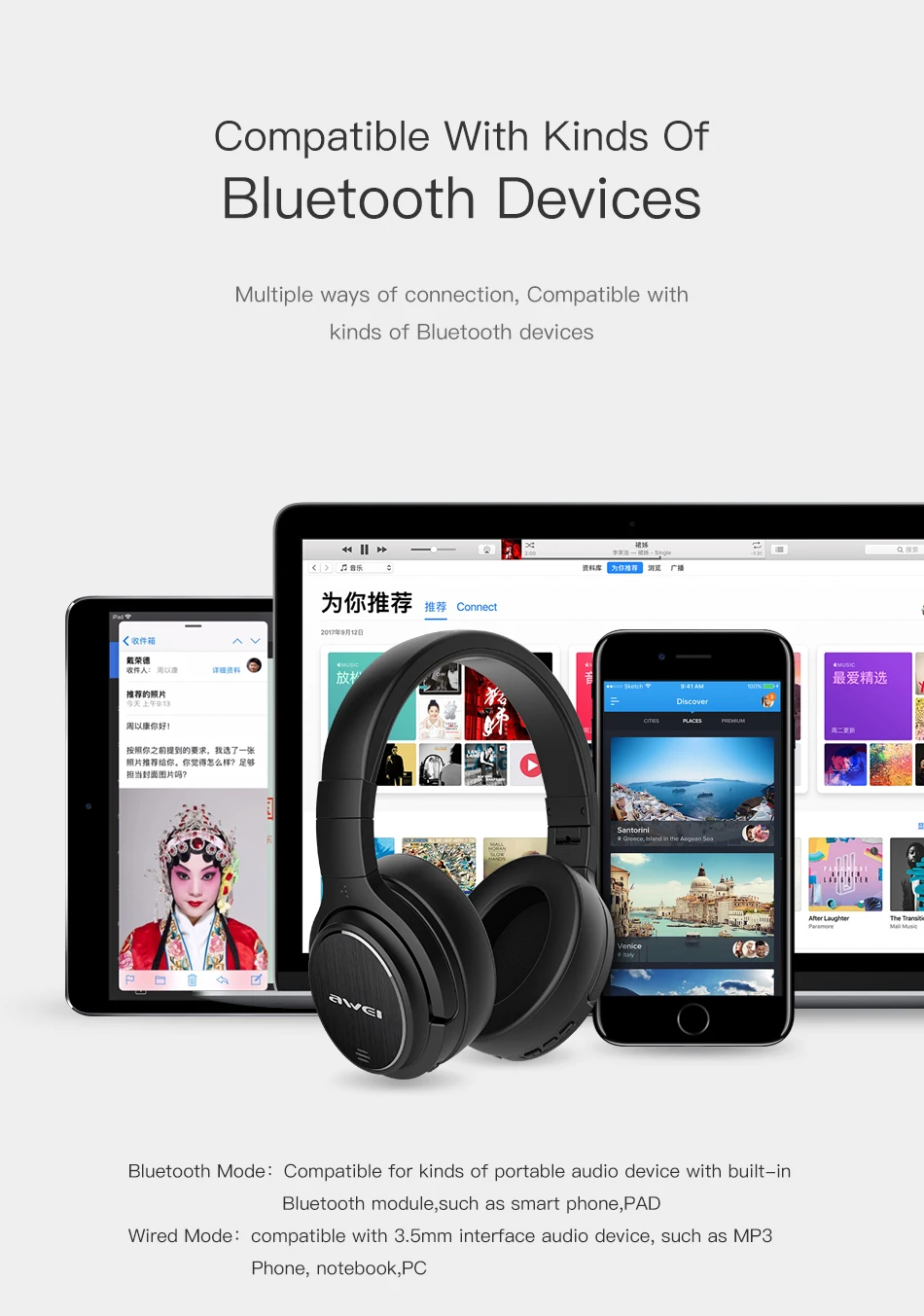 AWei A950BL Wireless Headphones Bluetooth Headset Noise Cancellation Games Earphone