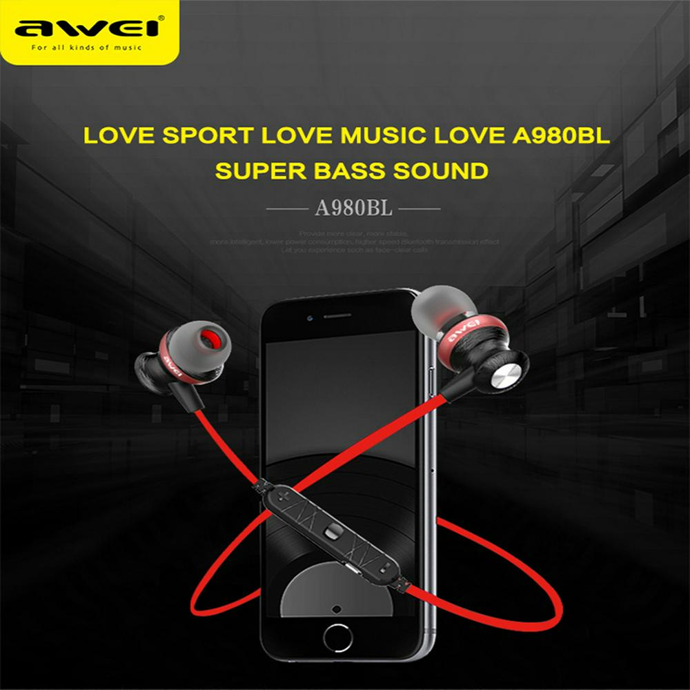 Awei A980BL Surround Sound Intelligent Noise Reduction Hanging Neck Wireless Sports Bluetooth Headphones for Smartphones