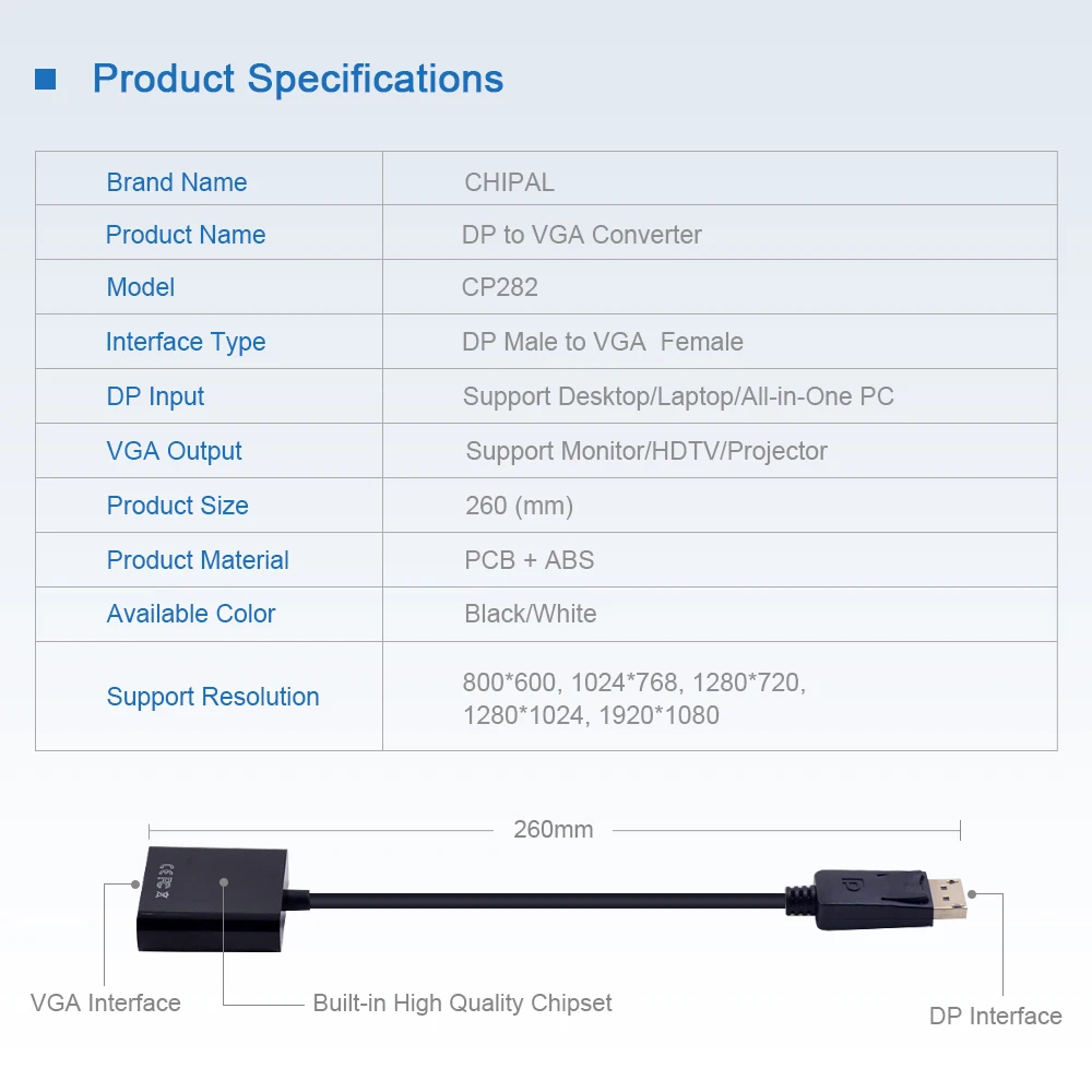 AY20 DisplayPort Display DP to VGA Adapter Cable PC Laptop HDTV Monitor Projector Converter