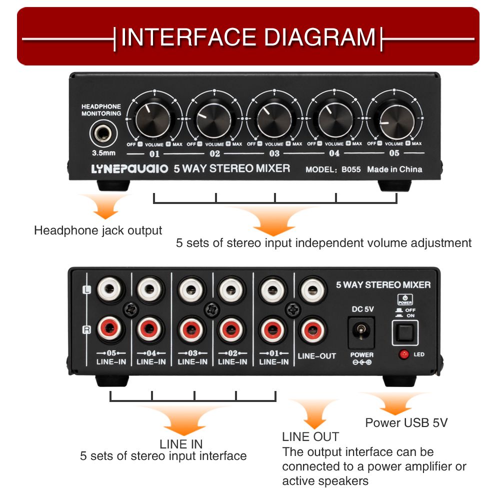 1. Mini Active Stereo Mixer is a 5-way active stereo mixer for extended control of tuning, mixing instruments, CD players, tape players, computers, mobile phones, tablets, etc. It is compact and thin desktop mini design, compact in size, compatible with any device