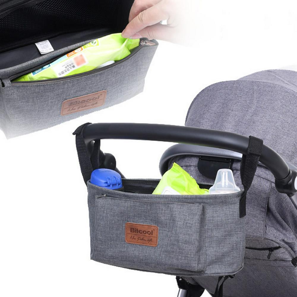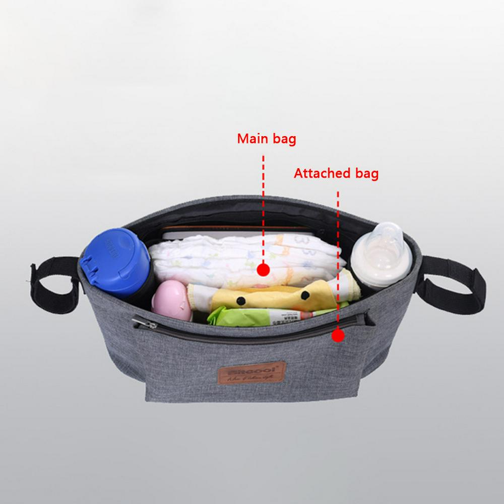 Quality touch fastener strap function as hook to hang bag over the stroller bar.