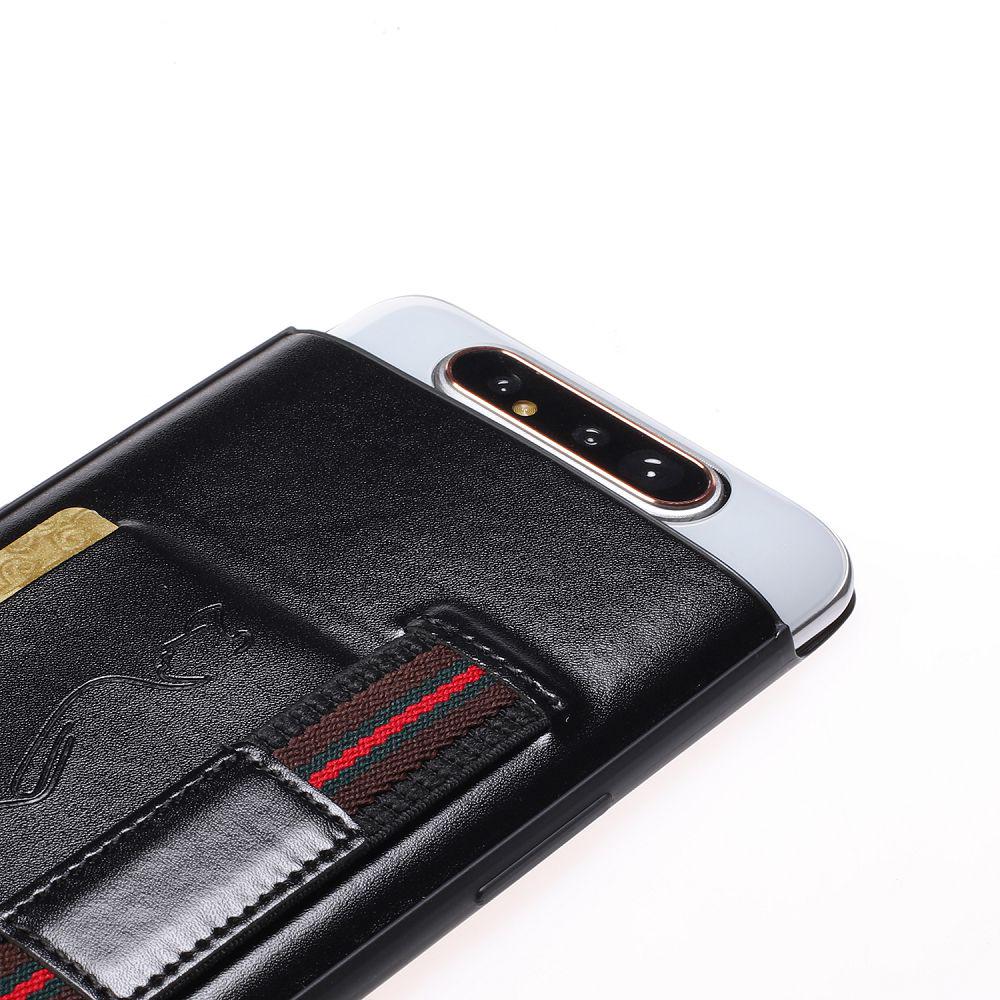 Back Card Slot Phone Case for Samsung Galaxy A80, Leather Coated Soft TPU Phone Cover With Hand Strap