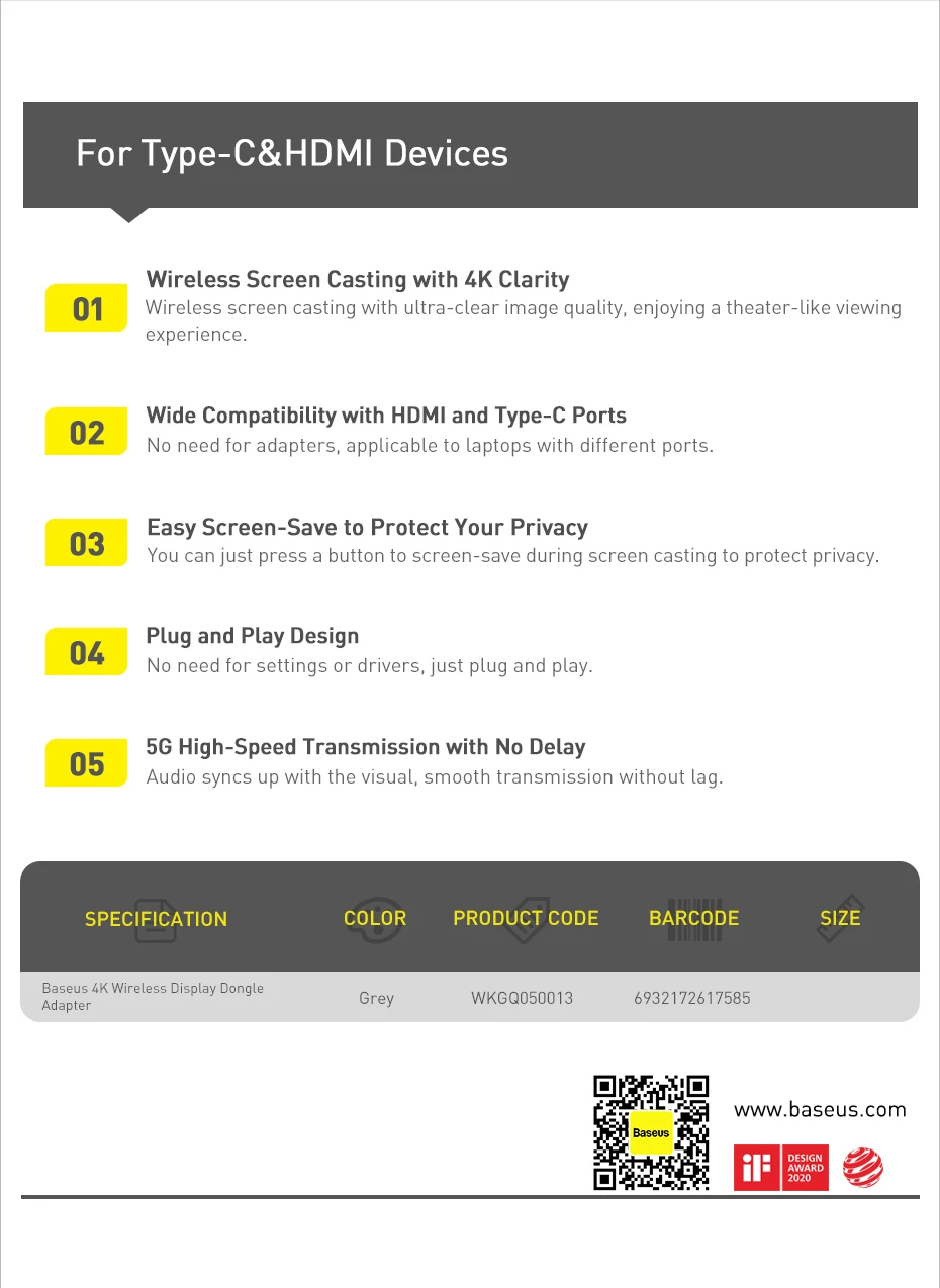 HDMI-compatible and Type c port 2-in-1 design for the transmitter, widely compatible with various devices for screen casting.