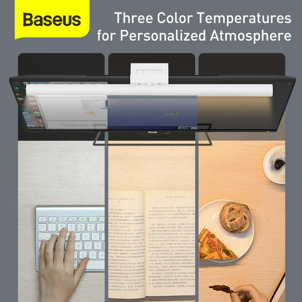 The asymmetric light source design is used to illuminate the desktop area directionally, without illuminating the screen, without glare, and protecting eyes.