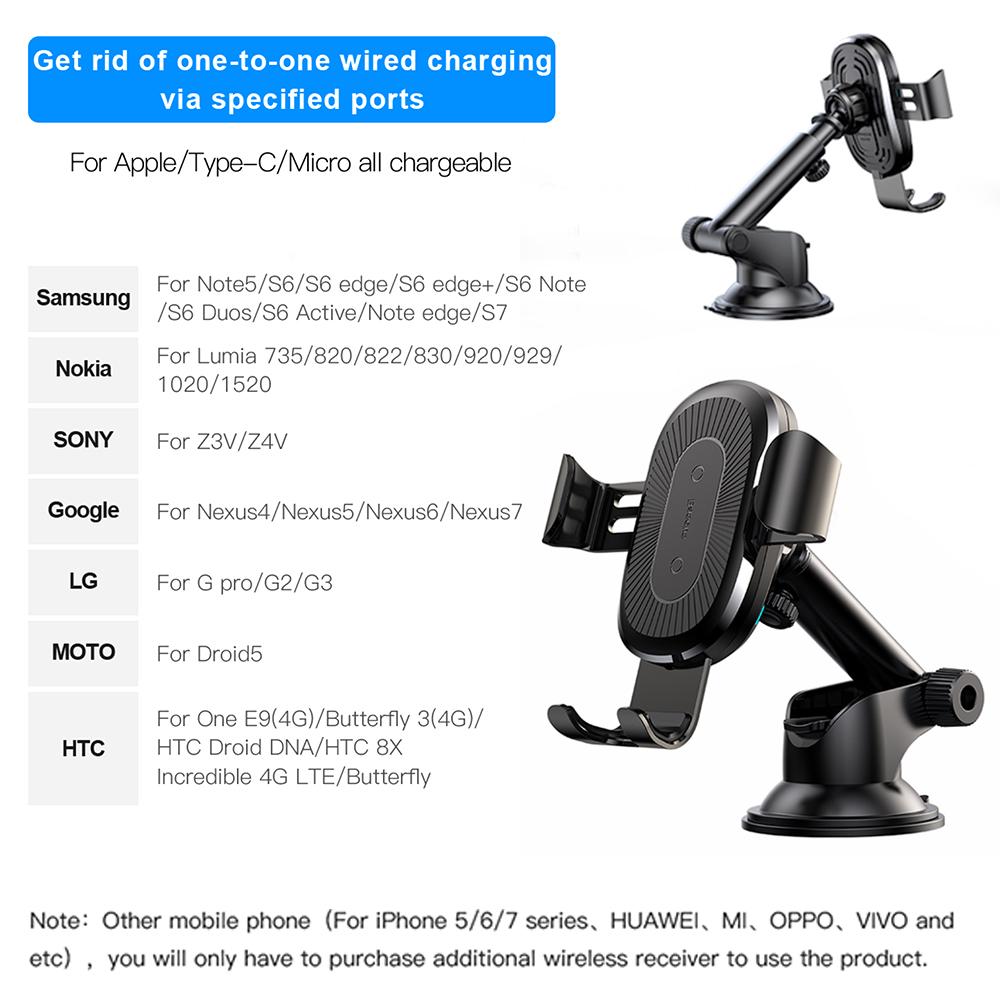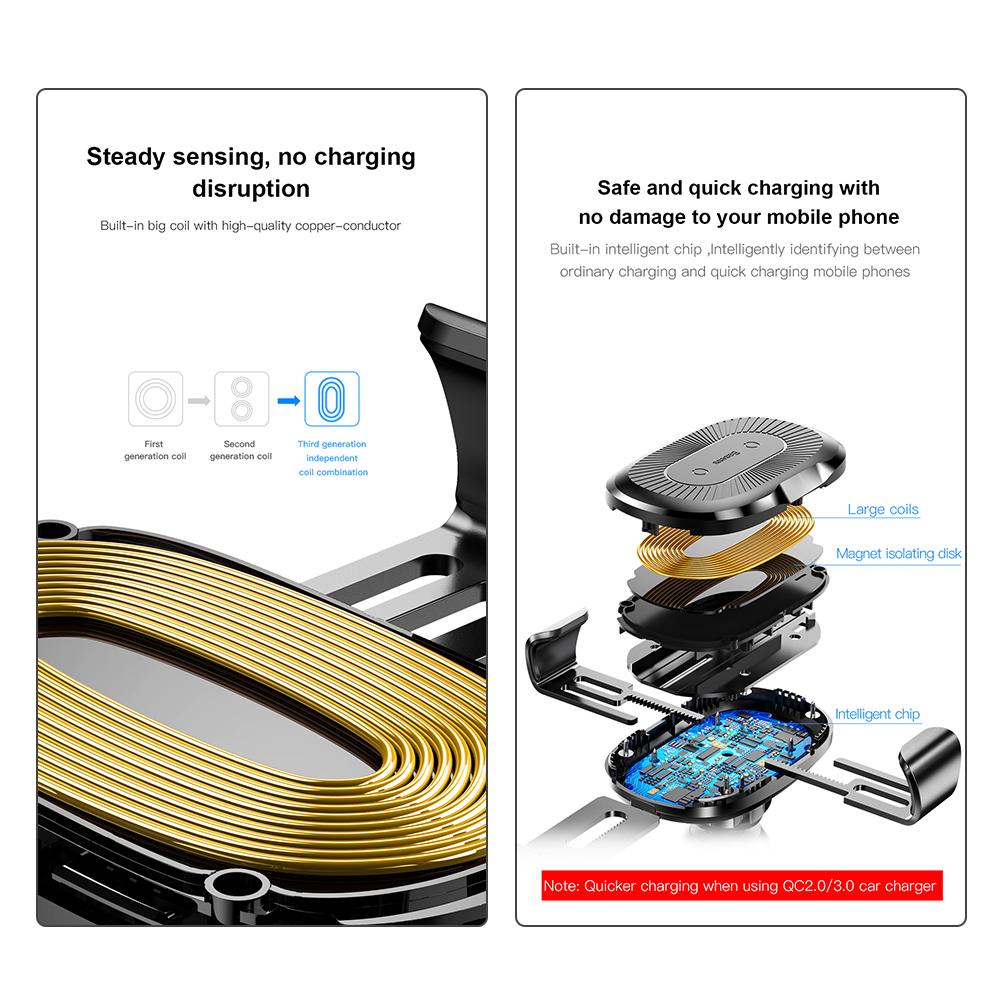 Baseus Qi Wireless Car Charger Quick Wireless Charging Charger Car Mount Mobile Phone Holder