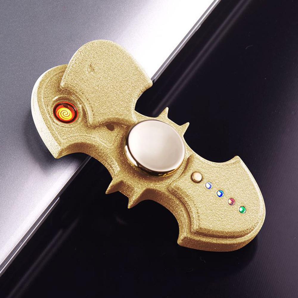 Batman Fingertip Gyro Rotation Finger Toy Gyro Fidget Spinner for Stress Release EDC with LED Lamp Flash + Electronic Windproof Cigarette USB Charging Lighter