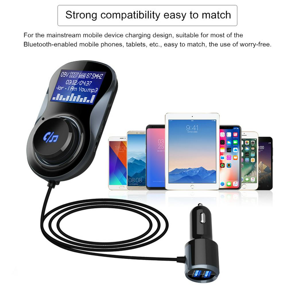 Full FM radio frequency range 87.5-108.0 MHz is wider than regular transmitters (88.1 ~ 107.9 MHz), which means that you have a frequency of interference-free more easily and not have to keep re-tuning it. This radio adapter works with Bluetooth compatible devices such as iPhone, iPad, iPod, tablet, smartphones or MP3 player.