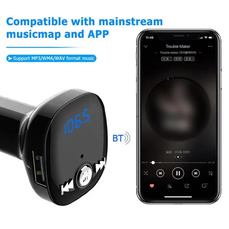 - Support FM full frequency transmission function 87.5-108.0MHz;