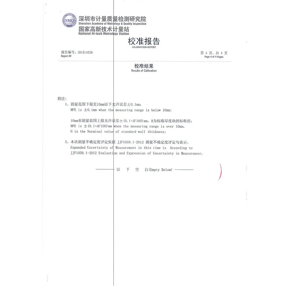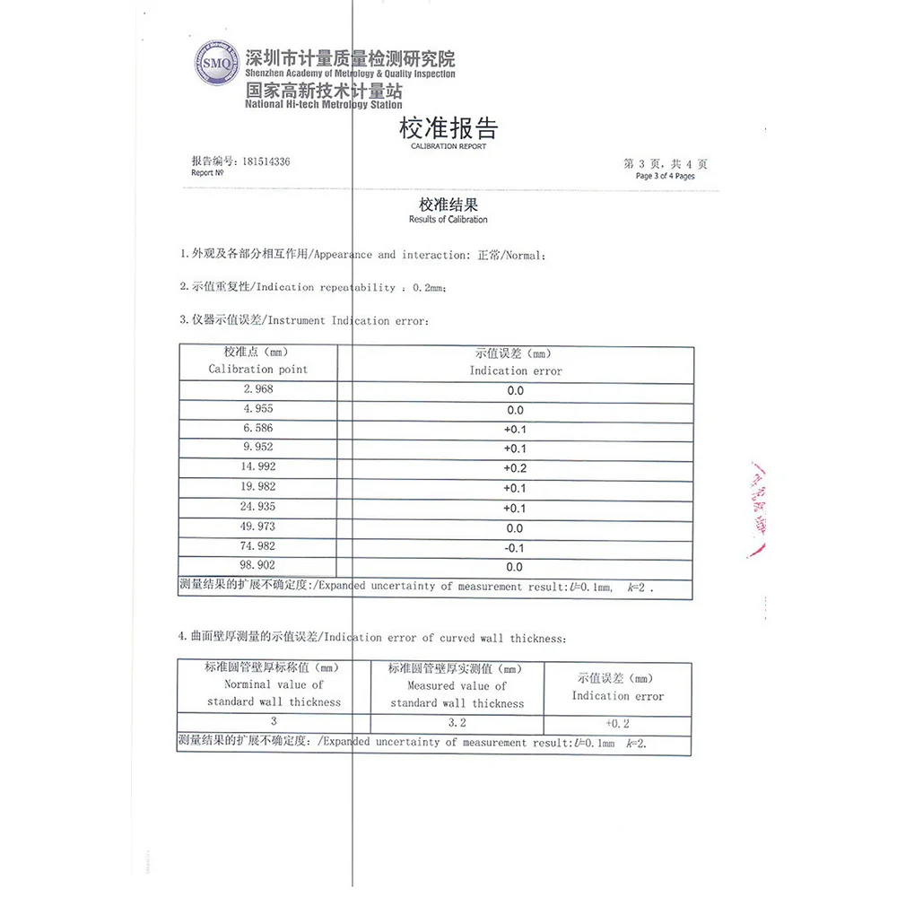 Accuracy: ±(1%H+0.1)mm, H denotes the measured thickness.