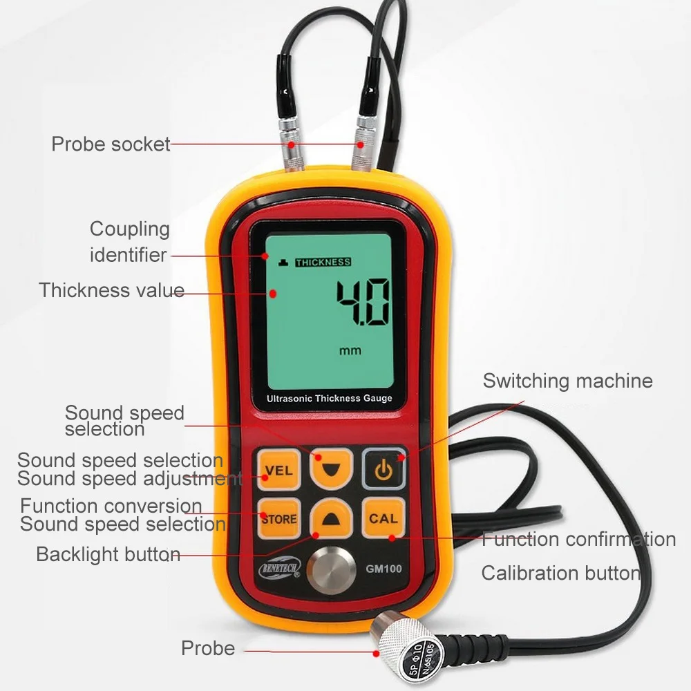 This ultrasonic thickness gauge is an intelligent handhold product, which adopts ultrasonic measuring principle, and is controlled by micro processor, provides quick and precise measurement of thickness for most of industrial material.