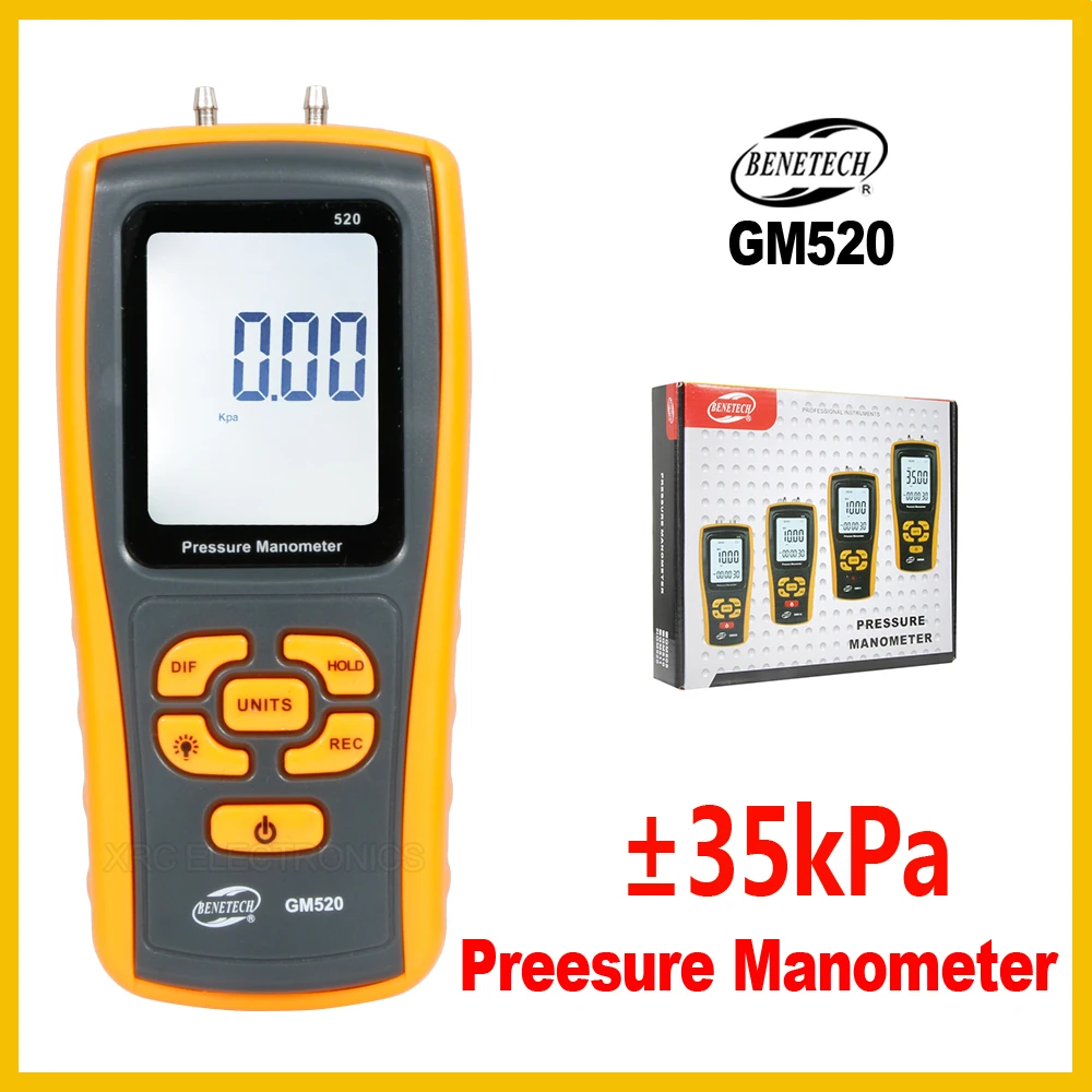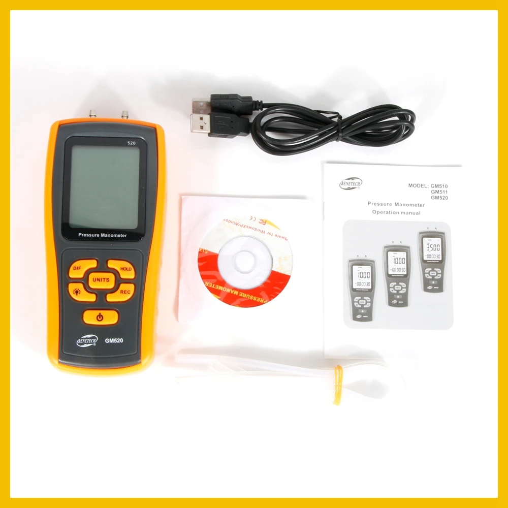 High-Precision Digital Pressure Gauge Differential Pressure Meter Air Pressure Gauge USB LCD Display GM520 -BENETECH
