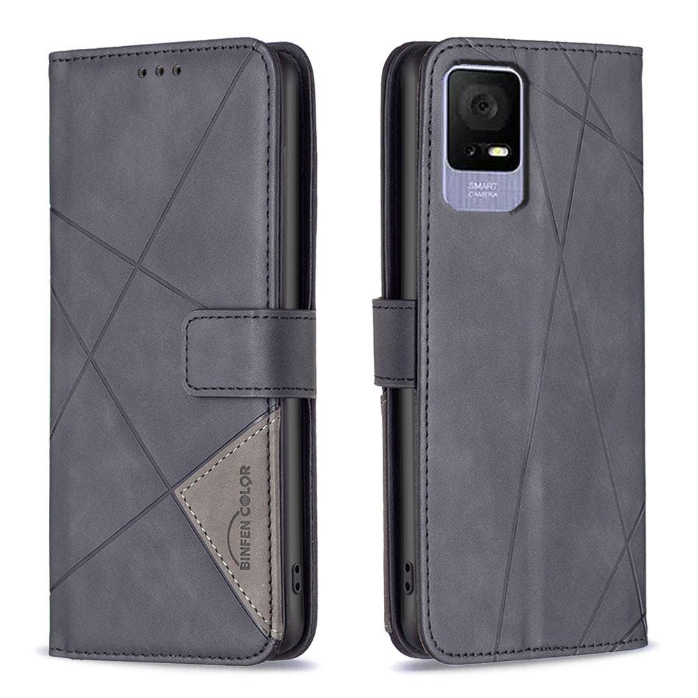 BF05 For TCL 405 Stitching Rhombus Pattern Folio Flip PU Leather Wallet Phone Case