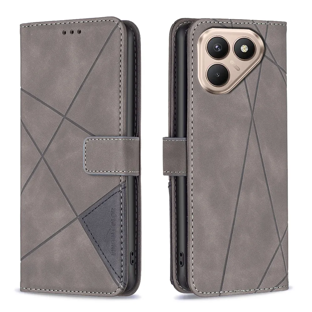 BF05 For Tecno Pova 7 Pro Stitching Rhombus Pattern Folio Flip PU Leather Wallet Phone Case