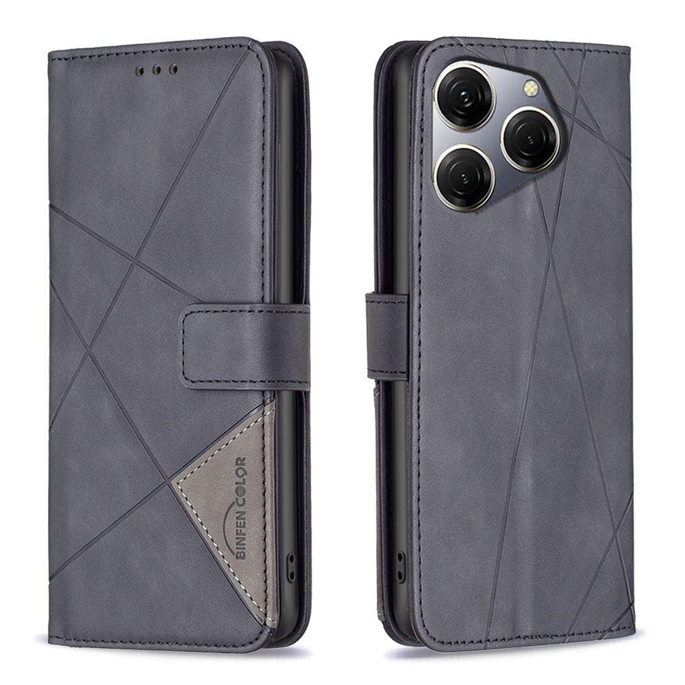 BF05 For Tecno Spark 20 Pro Stitching Rhombus Pattern Folio Flip PU Leather Wallet Phone Case