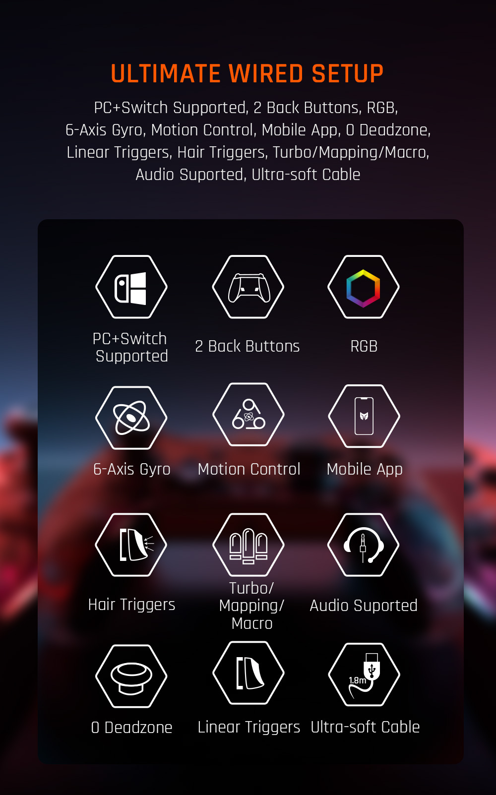 Connection mode: wired connection (pluggable Type-C ultralight electric racing cable 1.8m)