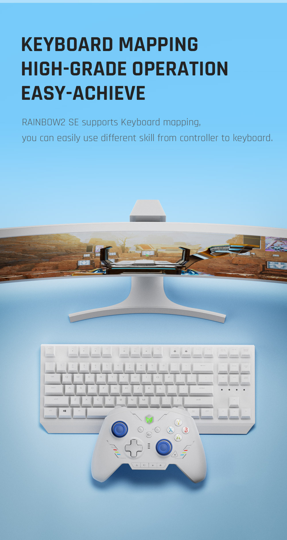 【APP on PC】Rainbow 2 SE wired controller supports APP customizing and quick setting on PC. Easily adjust motion control,joystick,trigger,buttons,and MACRO. App is NOT supported on the mobile.【Keyboard Mapping】RAINBOW 2 SE wireless game controller supports keyboard mapping. You can use various advanced skills in the game through simple settings in the APP. 【Reset】Press and hold the HOME button for 10 seconds until the controller vibrates.
