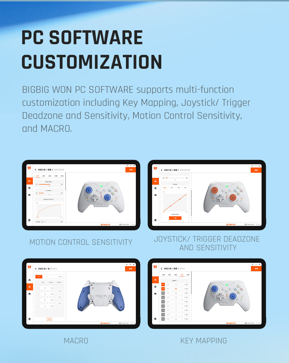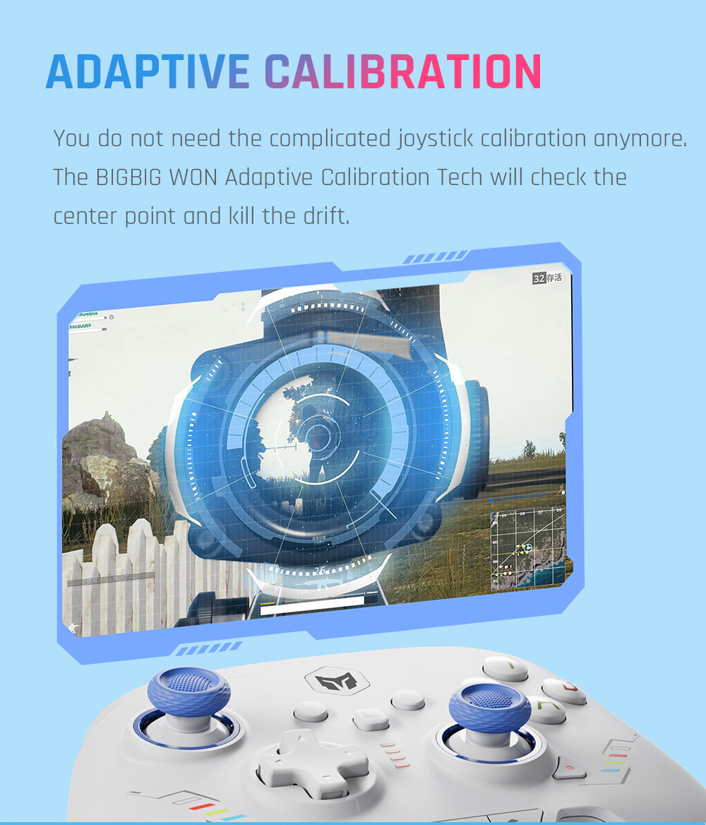 【12-bit ADC Joysticks】12-bit chip & 2000 levels axis resolution operate games more smoothly. There are 3 sets of joysticks for Rainbow 2 SE controller,short/middle/high. BIGBIG WON adaptive calibration reduces the drift to the lowest without any operation. 【0 Deadzone】Gaming controller for FPS gaming ensures precise control and accurate shooting.【4-way &8-way D-pads】4-way D-pad is designed for every game,and 8-way D-pad is specially for For FTG Games. Choose the configuration you like.