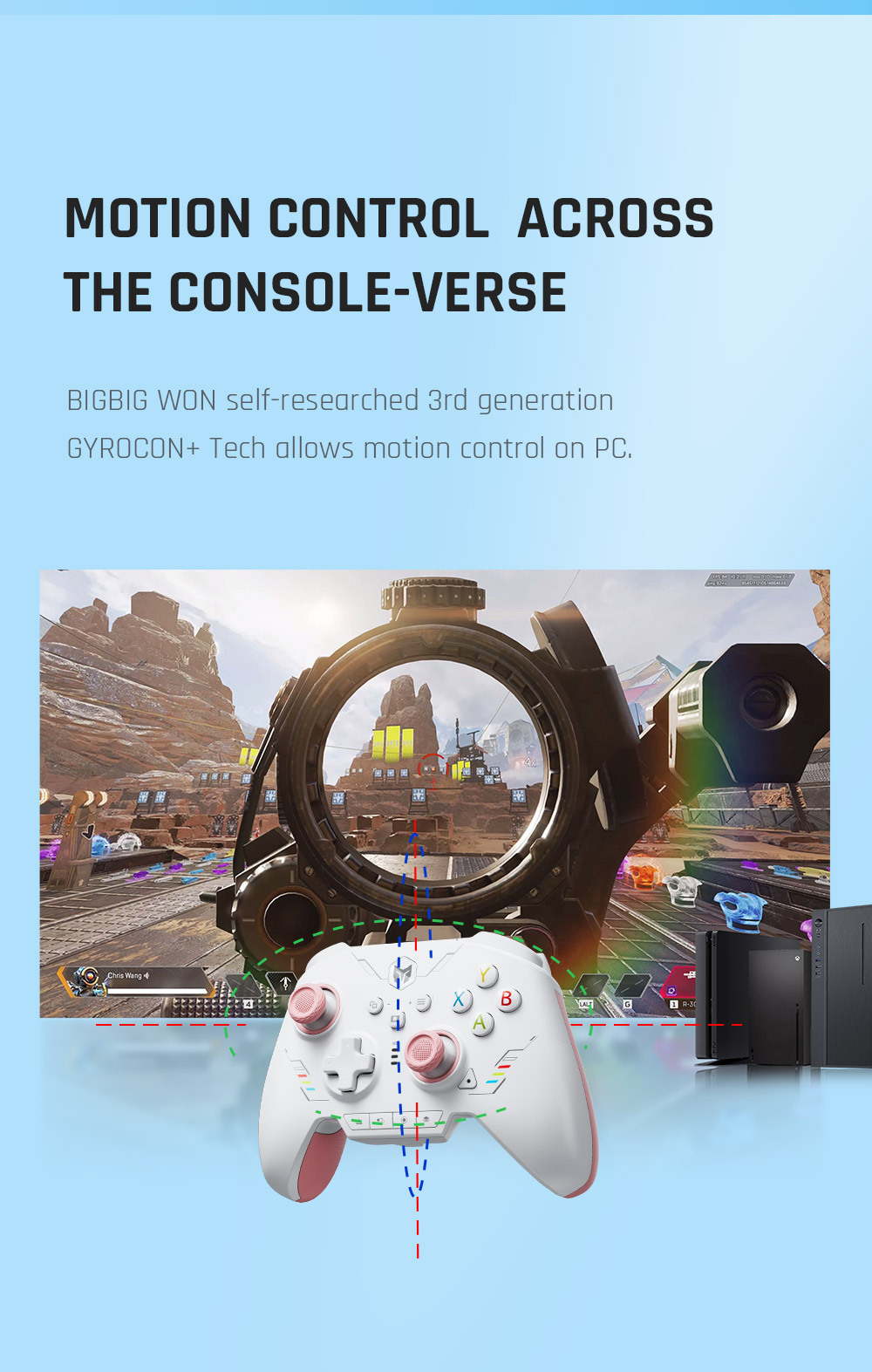 【Motion Control】BIGBIG WON self-developed 3rd generation GYROCON+ Tech of PC gaming controller allows motion control on PC. Please do not turn on motion aiming function on Switch. Switch supports native motion control. 【Hall-effect Trigger】256-level hall trigger of bluetooth controller provides precise control for racing,quick fire,short pull for shooting games like APEX,long pull for racing games like Forza Horizon 5.