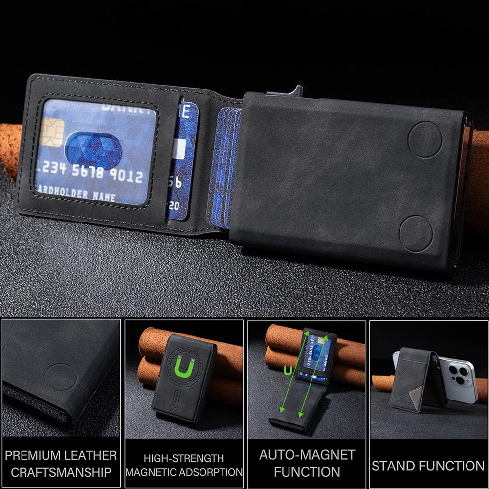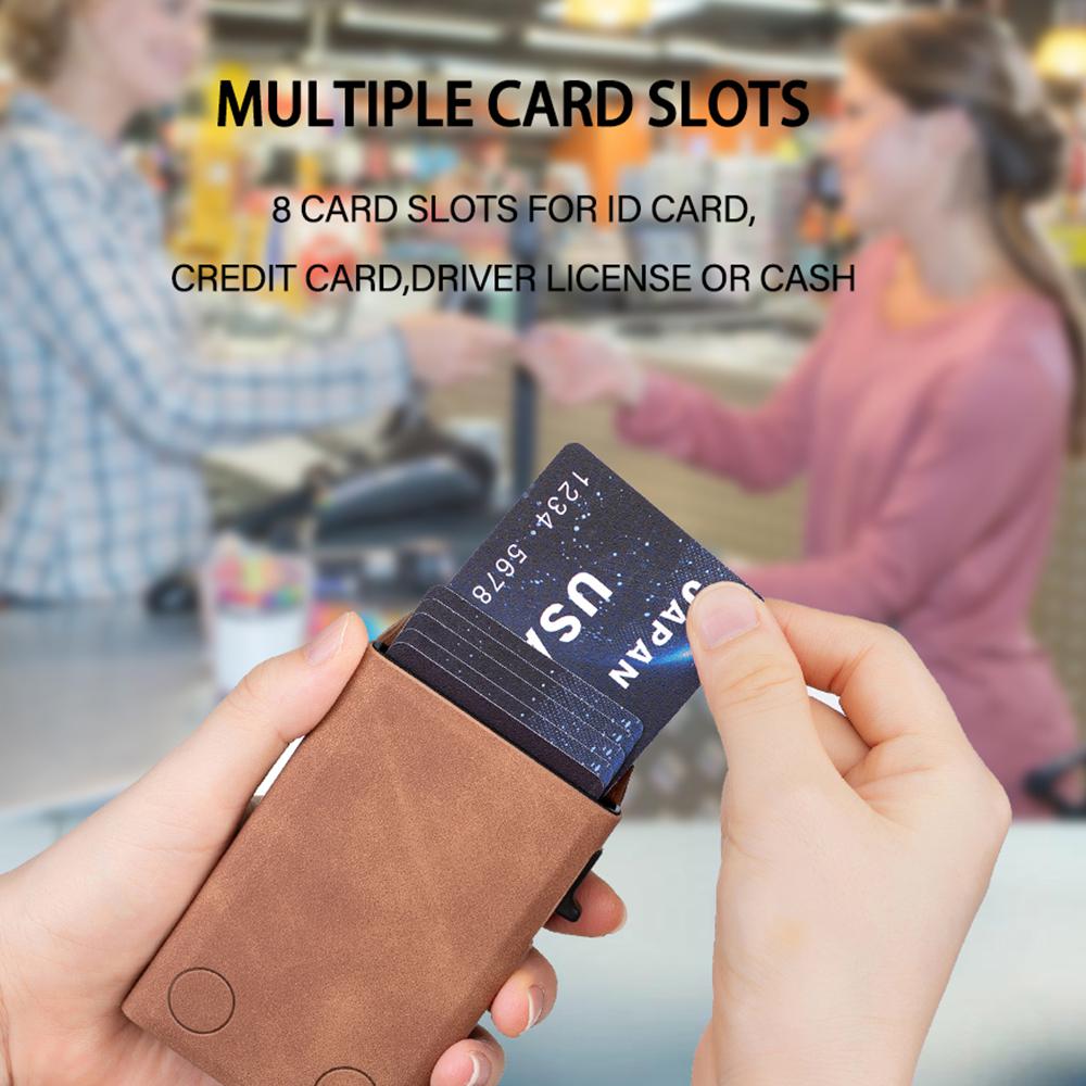 Premium PU Leather Craftsmanship:Crafted from high-quality PU leather, this card holder exudes sophistication and durability, ensuring long-lasting protection for your cards.