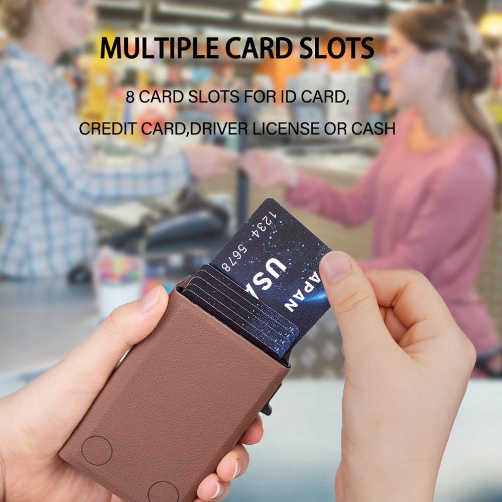 Premium PU Leather Craftsmanship:Crafted from high-quality PU leather, this card holder exudes sophistication and durability, ensuring long-lasting protection for your cards.