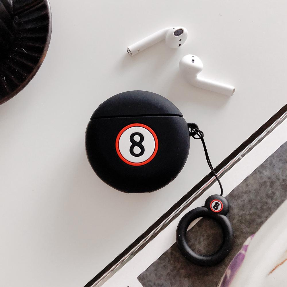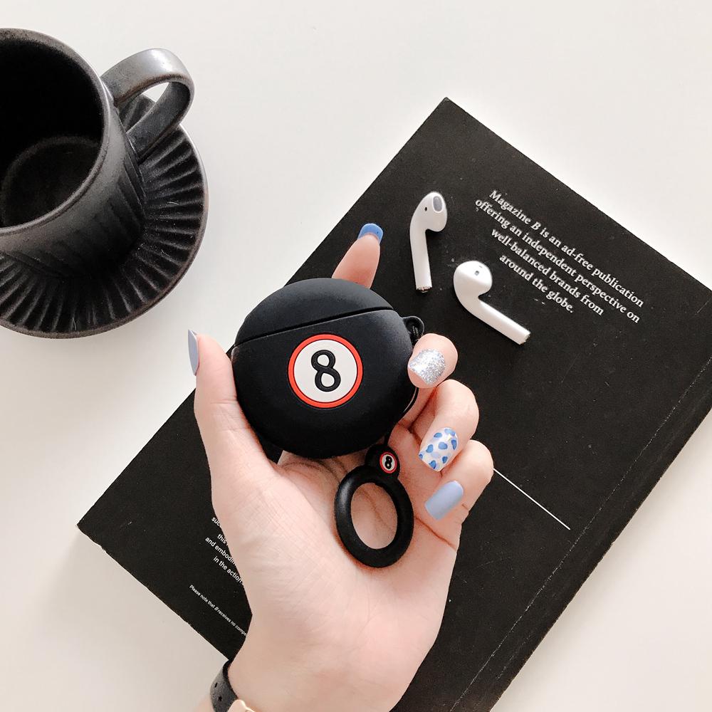 Black Billiards 8 Airpods Case Keychain AirPod Earbud Charging Bluetooth Earphone Protective Hard Cover Case