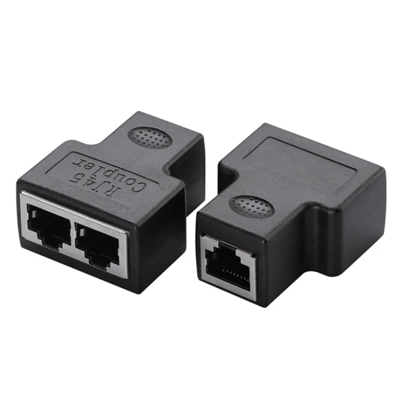 Deploy one RJ 45 outlet into two,standard 8P8C designs. please note that only one port could be used at a time.