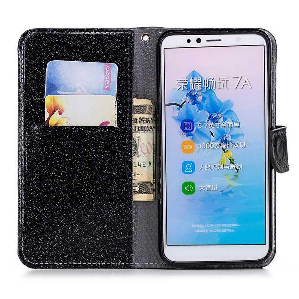 Bling Style Glitter Powder PU Leather + Soft TPU with Wallet Card Holder and Magnetic Buckle Case for Huawei Y6 (2018)