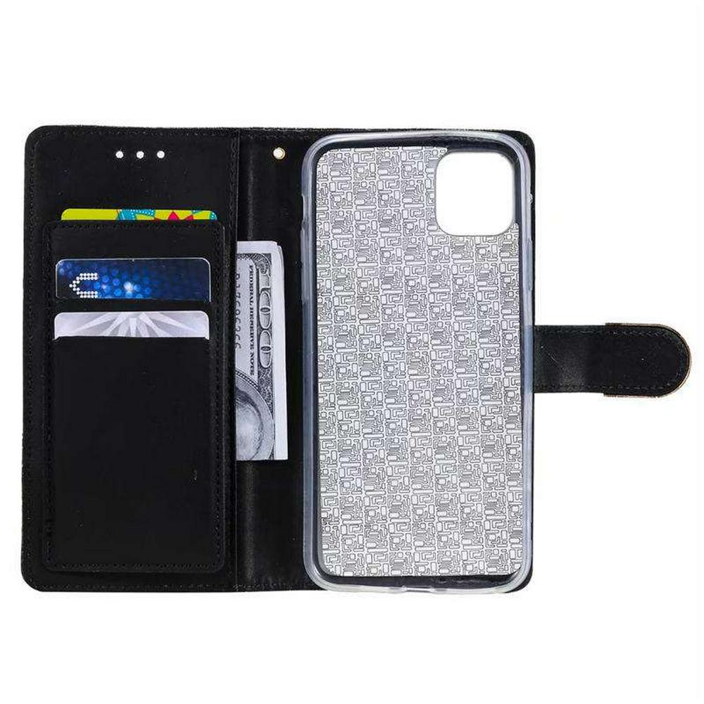 Bling Wallet Case for iPhone 2019 5.8inch, Glitter Leather Phone Case with Mirror and Wrist Strap
