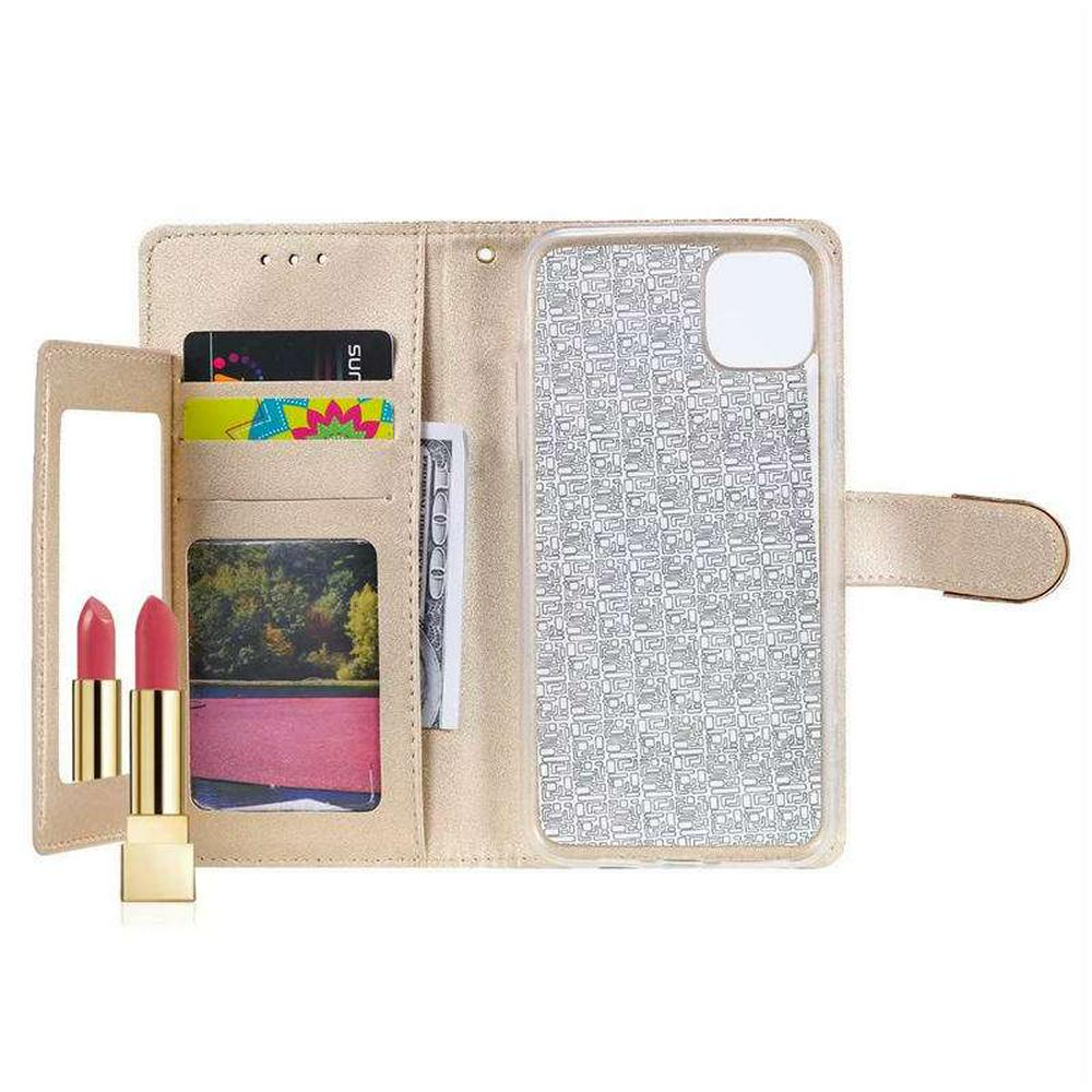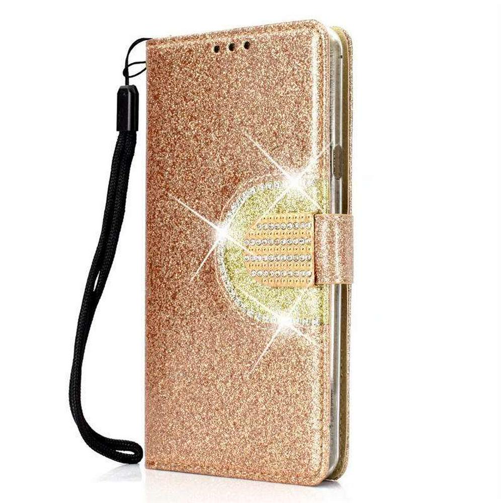 Bling Wallet Case for iPhone 2019 5.8inch, Glitter Leather Phone Case with Mirror and Wrist Strap