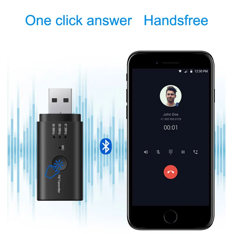 Specifications: Product model: B12 Bluetooth version: V5.0 + 2.1EDR Bluetooth distance: 10M FM distance: 8M Working voltage: DCSV / 2.1A (maximum) Power supply: USB power supply RF point: 87.5MHZ 88.OMHZ 88.8MHZ Applicable equipment: all kinds of speakers, car, radio, amplifier Package Includes: 1 x Car handfree FM transmitter 1X Aux audio cable 1 x User Manual