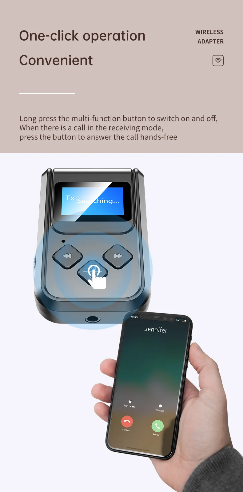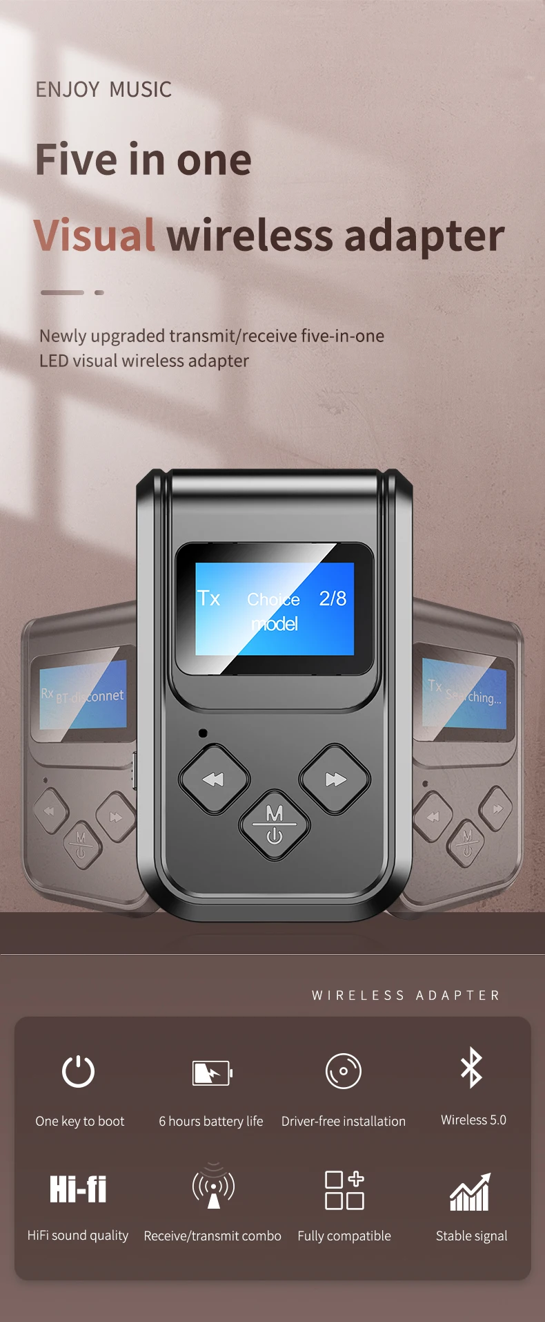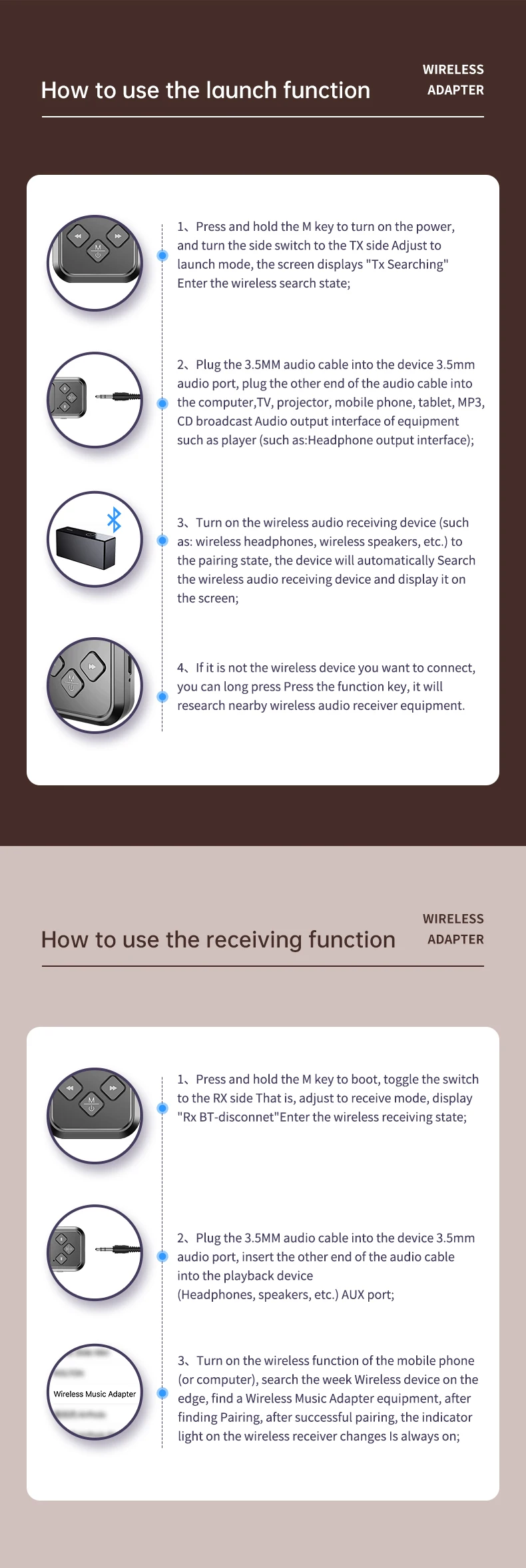 2 in 1 Bluetooth transmitter & receiver, as a Bluetooth audio transmitter, t15 is specially developed for audio devices (such as MP3, MP4, TV and PC, etc.) without Bluetooth function. You can connect the Bluetooth transmitter to the audio devices without Bluetooth function via the included 3.5mm audio plug, change these audio devices into bluetooth enabled audio devices, and that it will work with bluetooth enabled headset and speaker;