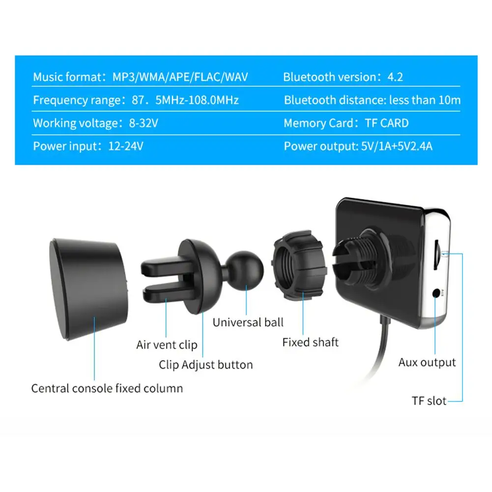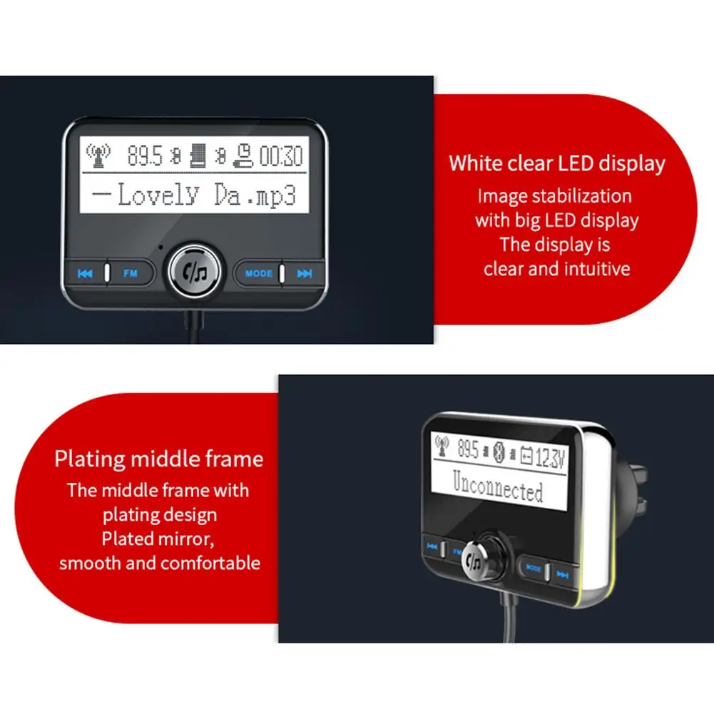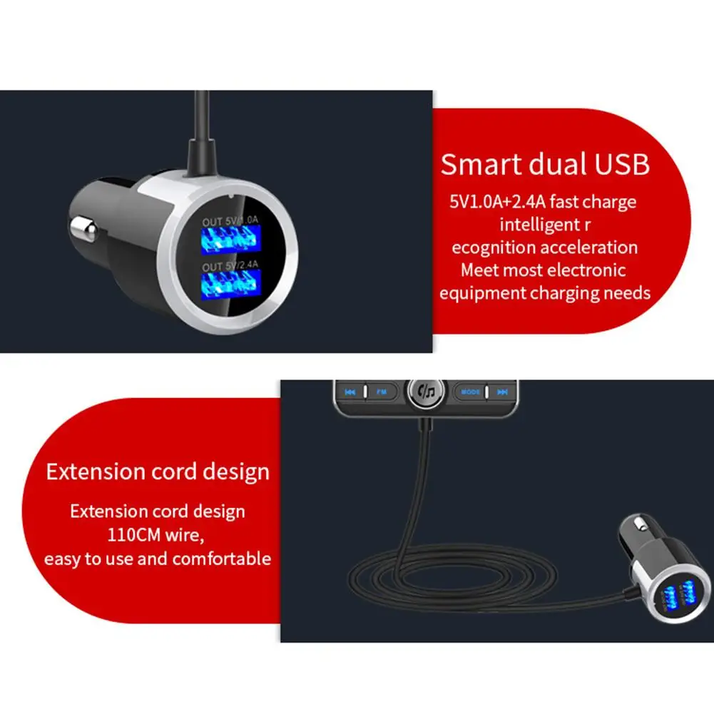Bluetooth FM Transmitter Double USB Ports Car Charger Car Vent Mount Music Player