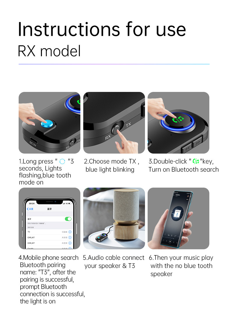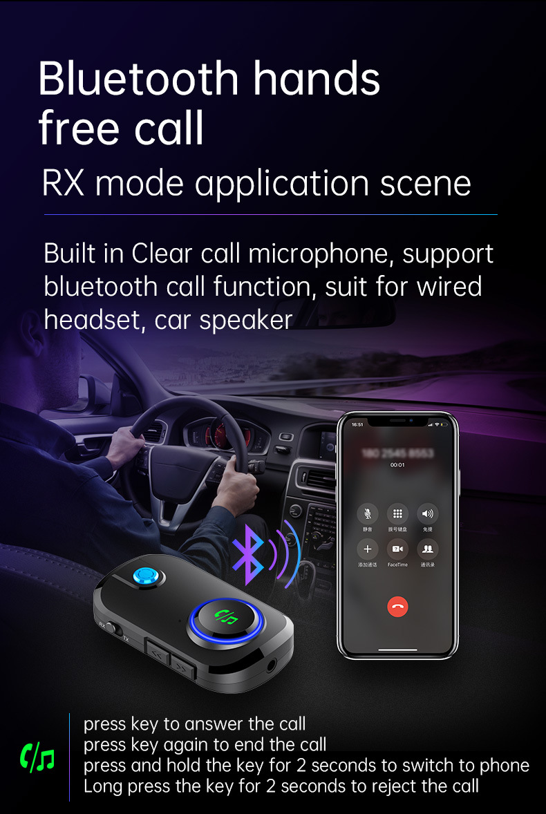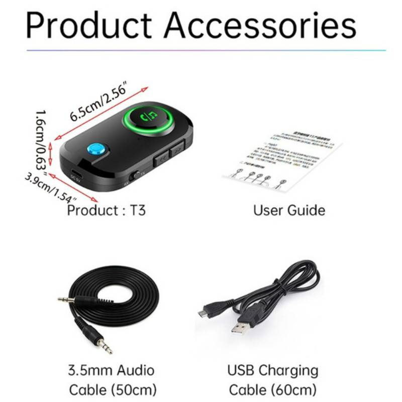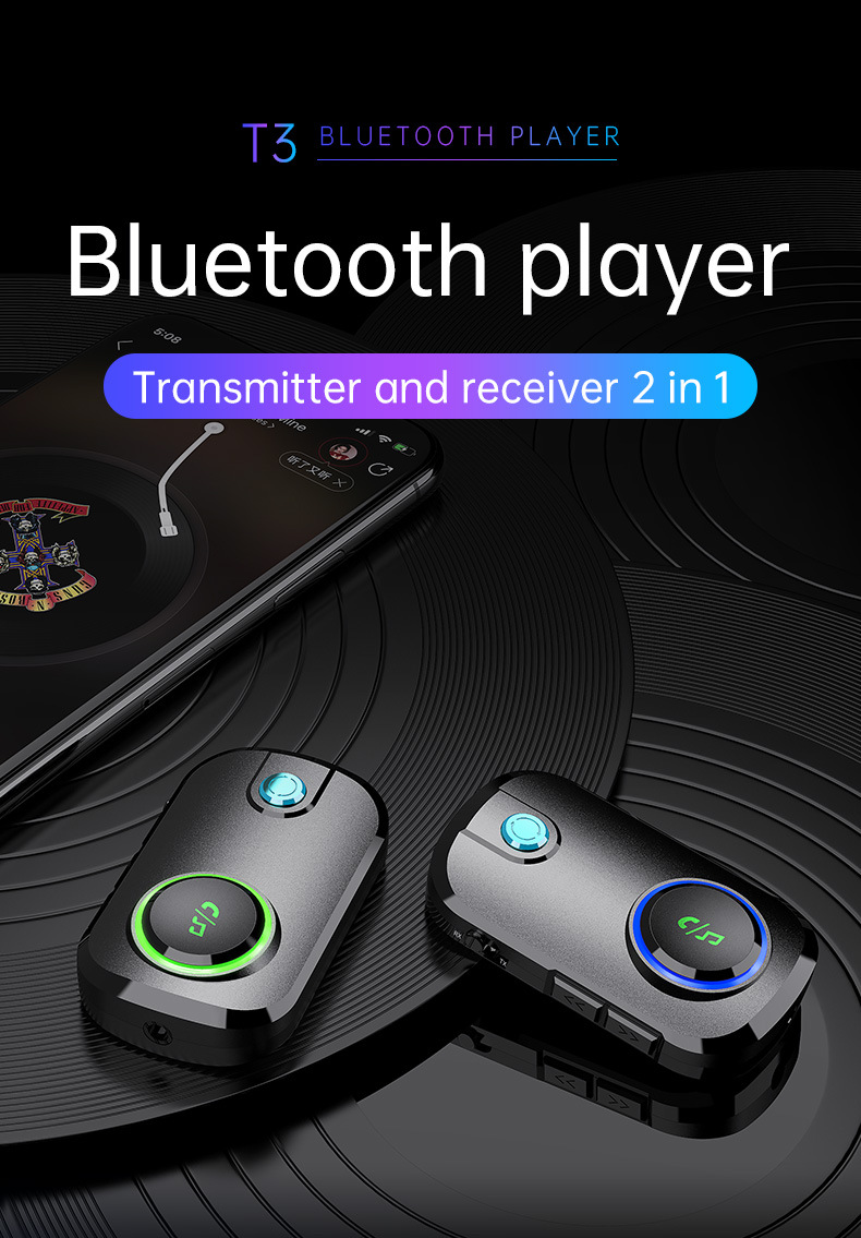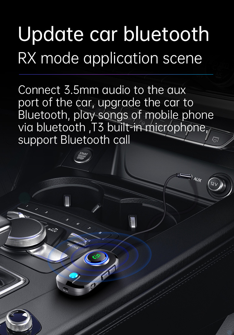 Bluetooth Receiver Transmitter Two In One T3 Car Bluetooth 5.0 TV Aux Bluetooth Audio Adapter Bluetooth FM Transmitter