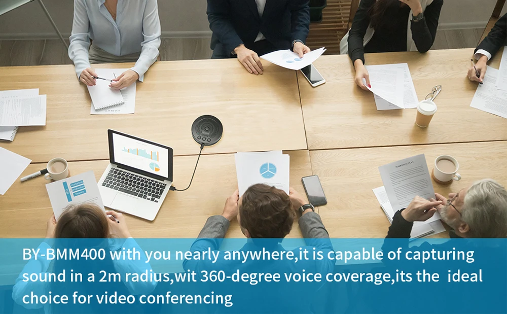 With portable and compact design and the included carry case, you can take BY-BMM400 with you nearly anywhere you go and turn easily any room into a conference facility at any anytime and anywhere.