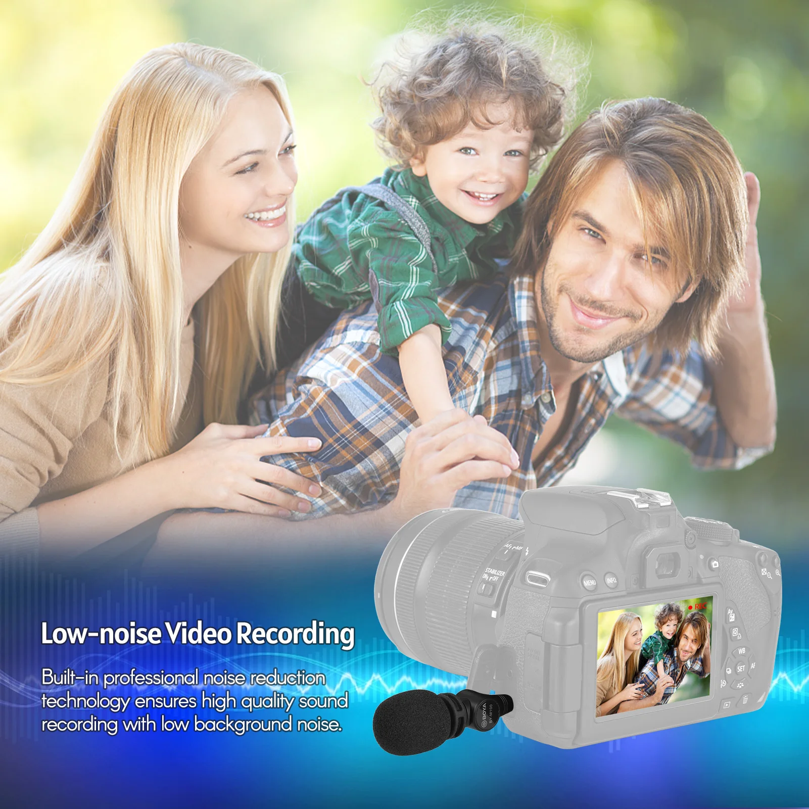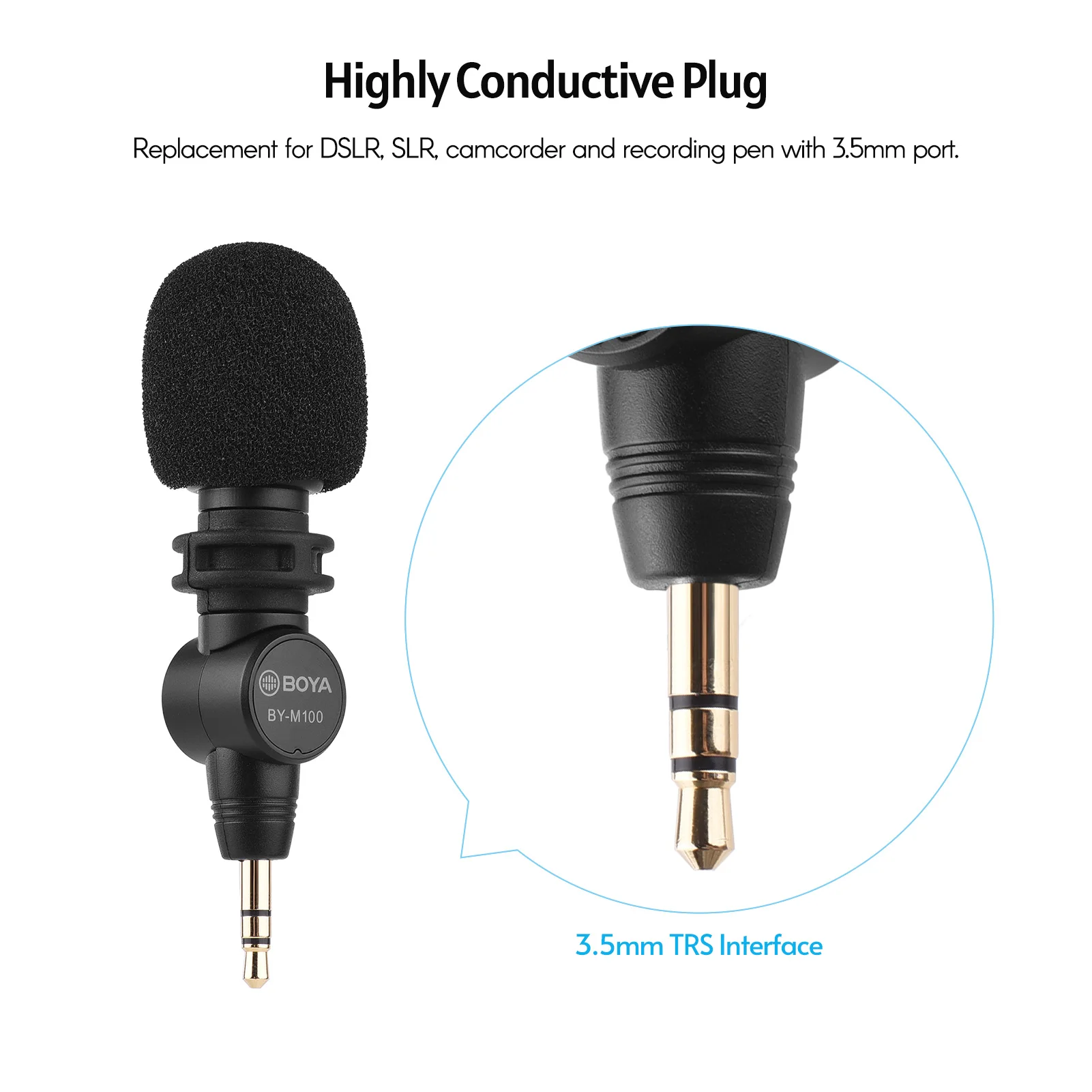 The microphone features 3.5mm TRS connector, useful recording device as replacement for DSLR,SLR cameras with 3.5mm interface.