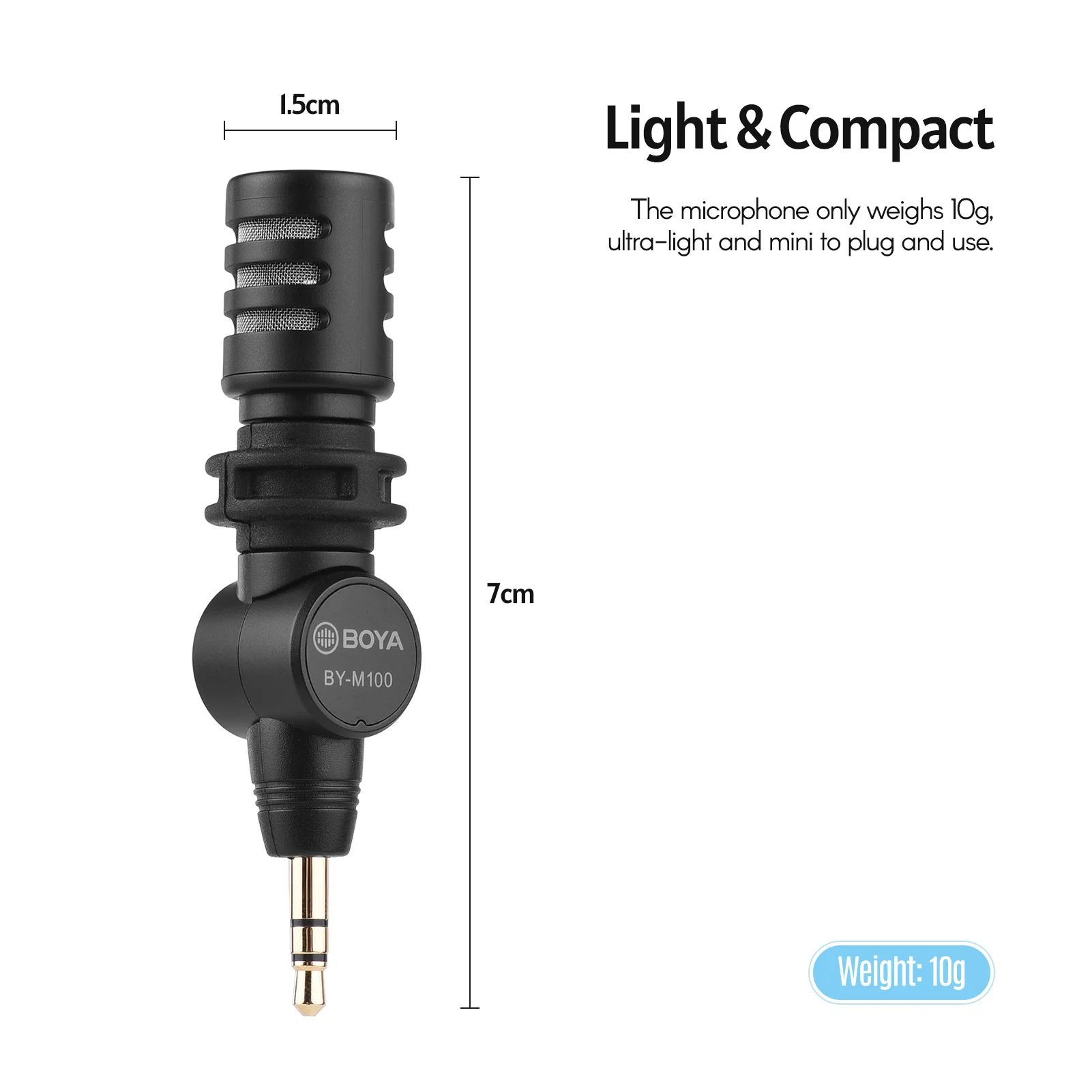 Mini size microphone for high quality record, plug and play, no battery required for recording.