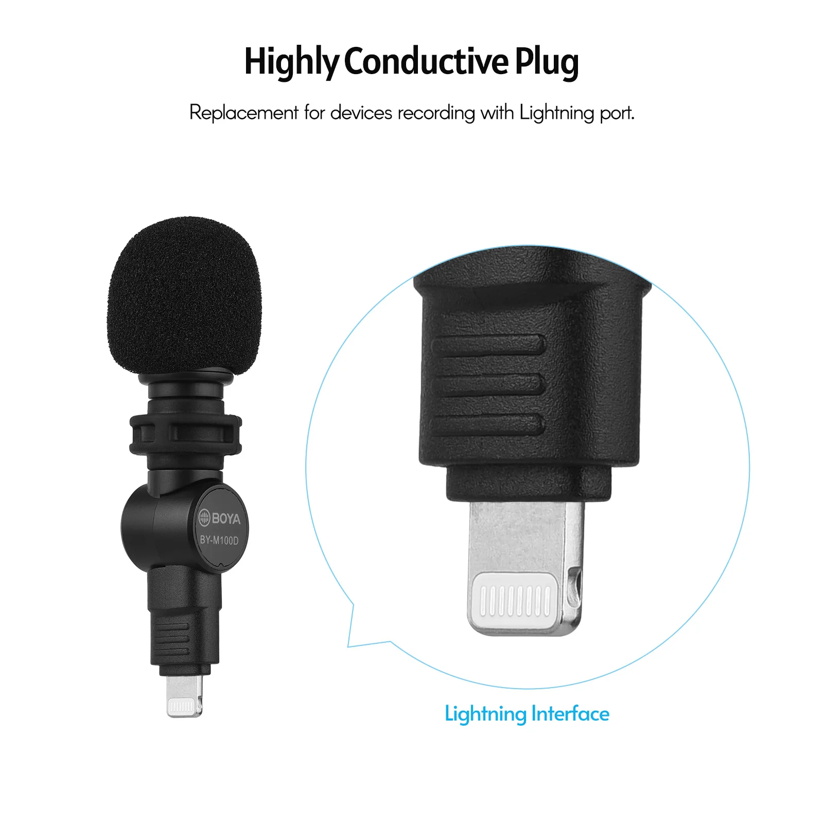 The microphone features connector, useful recording device as replacement for iPhone/ iPad/ iPod devices with port.