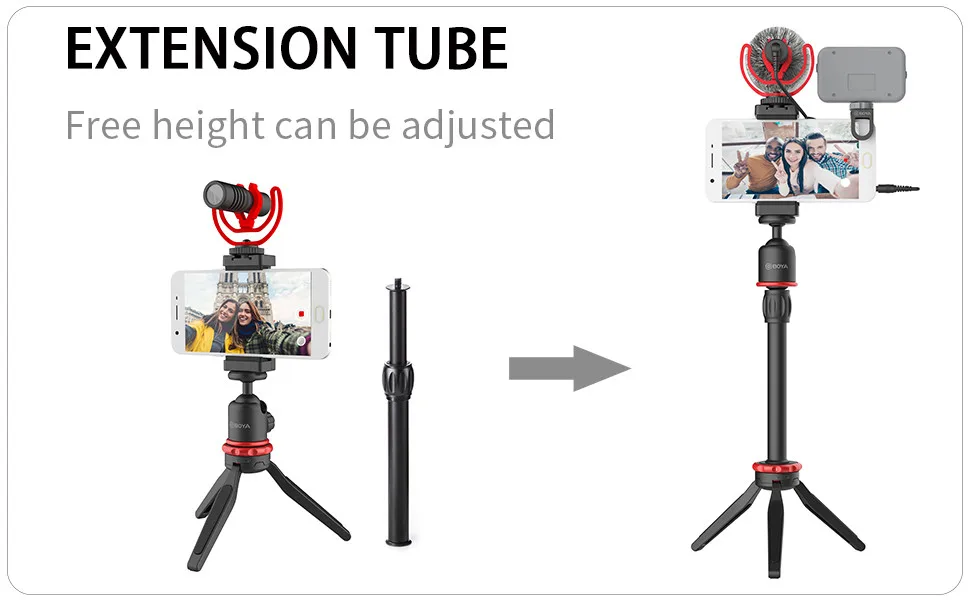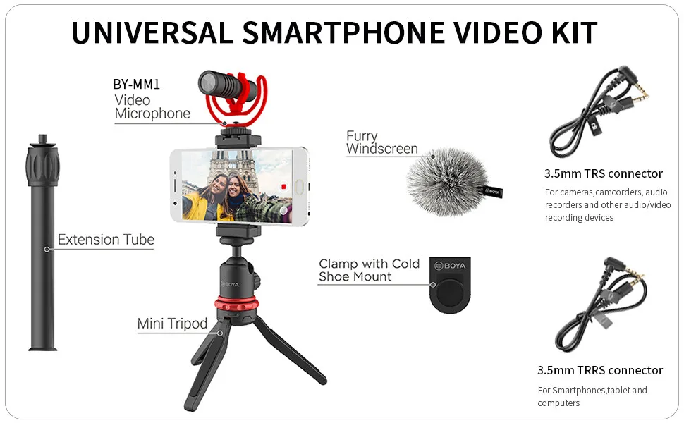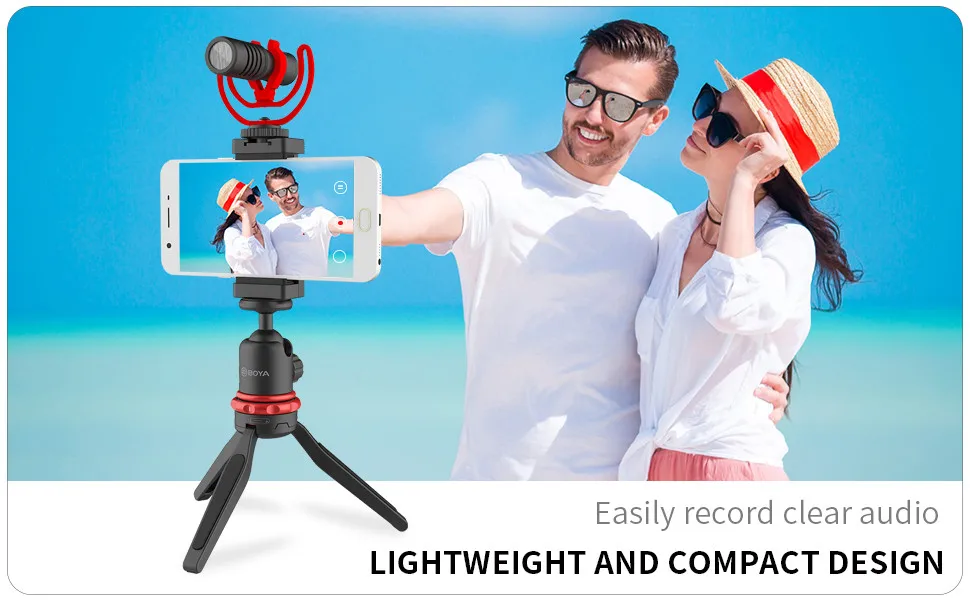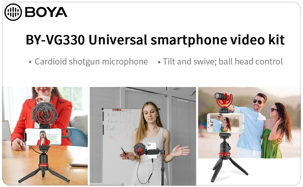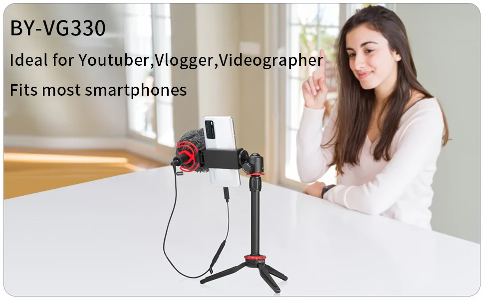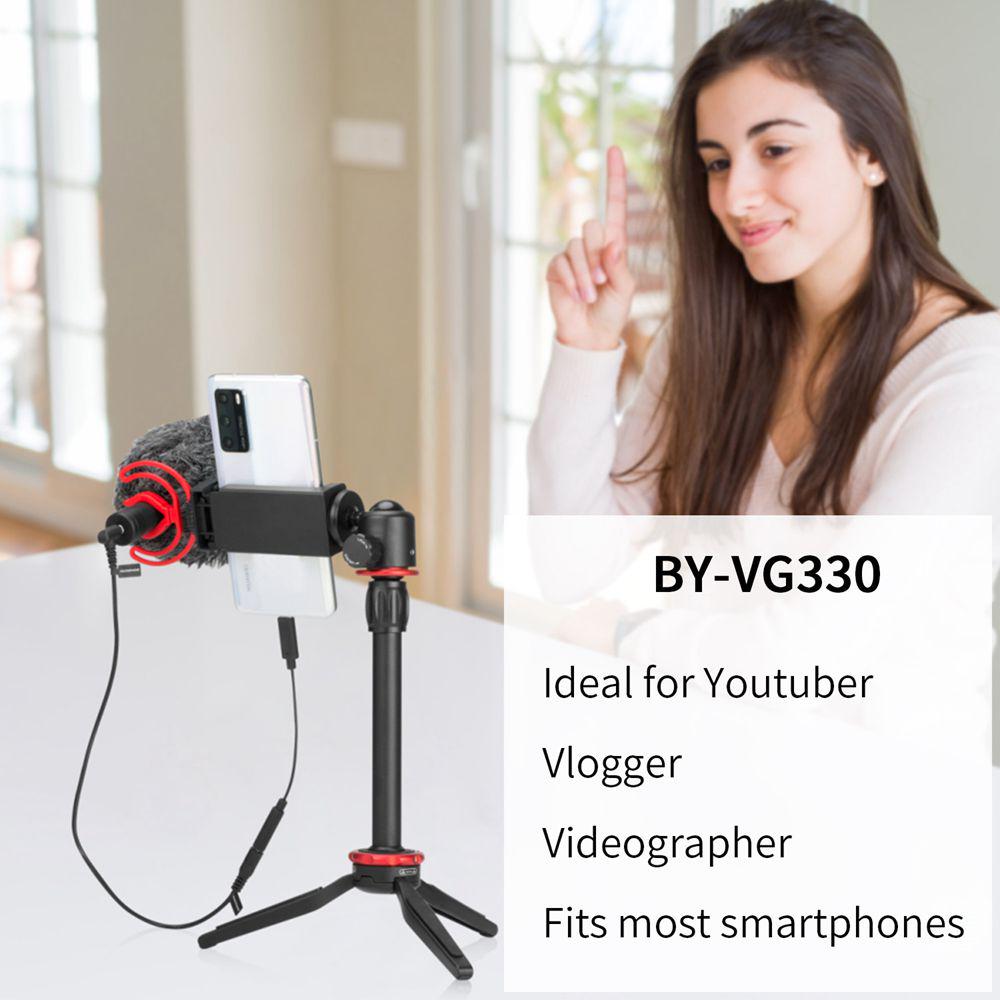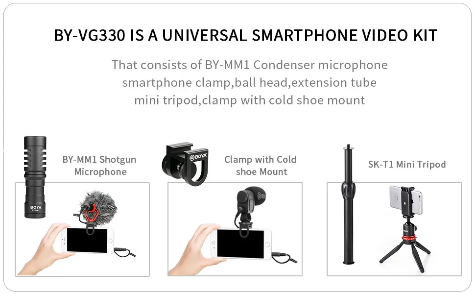 BY-VG330 is a universal smartphone video kit that consists of BY-MM1 condenser microphone, smartphone clamp, ball head, extension tube, mini tripod, clamp with cold shoe mount. Lightweight and compact design, it's very convenient to take no matter indoor or outdoor recordings, and on location. No extra accessories required, you can get a hassle-free audio solution with no compromised sound.