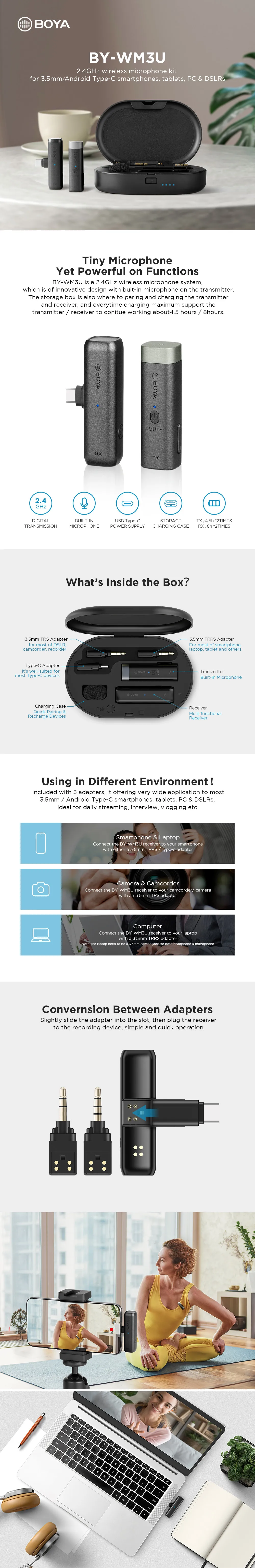 The BOYA BY-WM3U is a 2.4GHz wireless microphone system