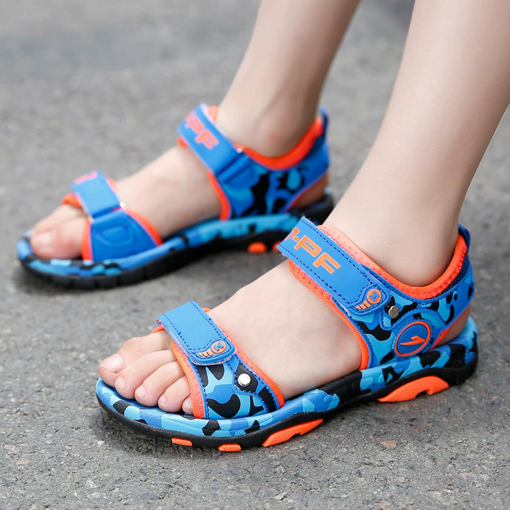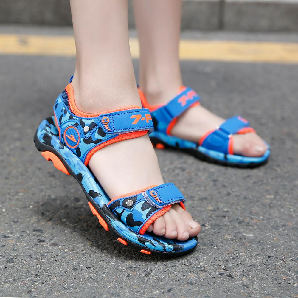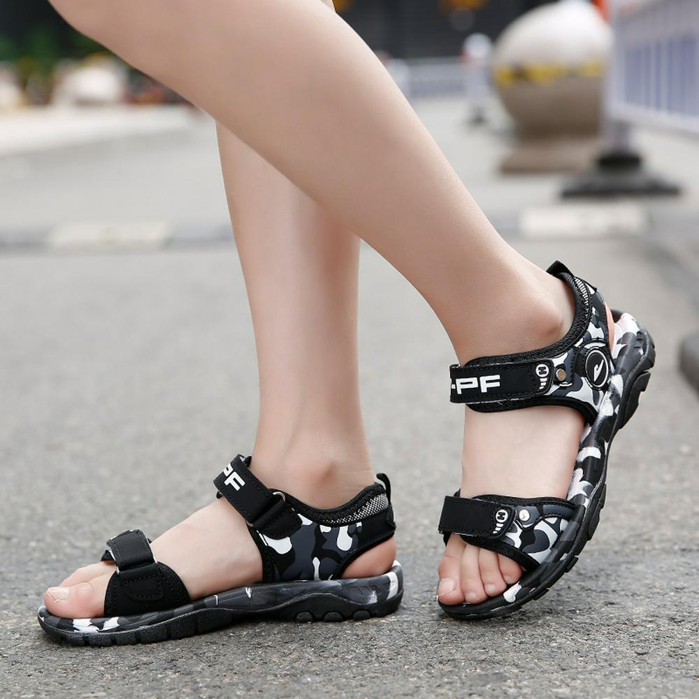 Boy's Beach Sandals Tough Touch Fastener Starp Closure Sports Sandals - Black