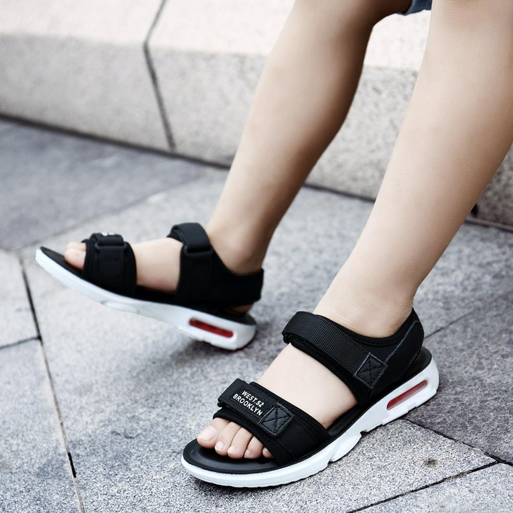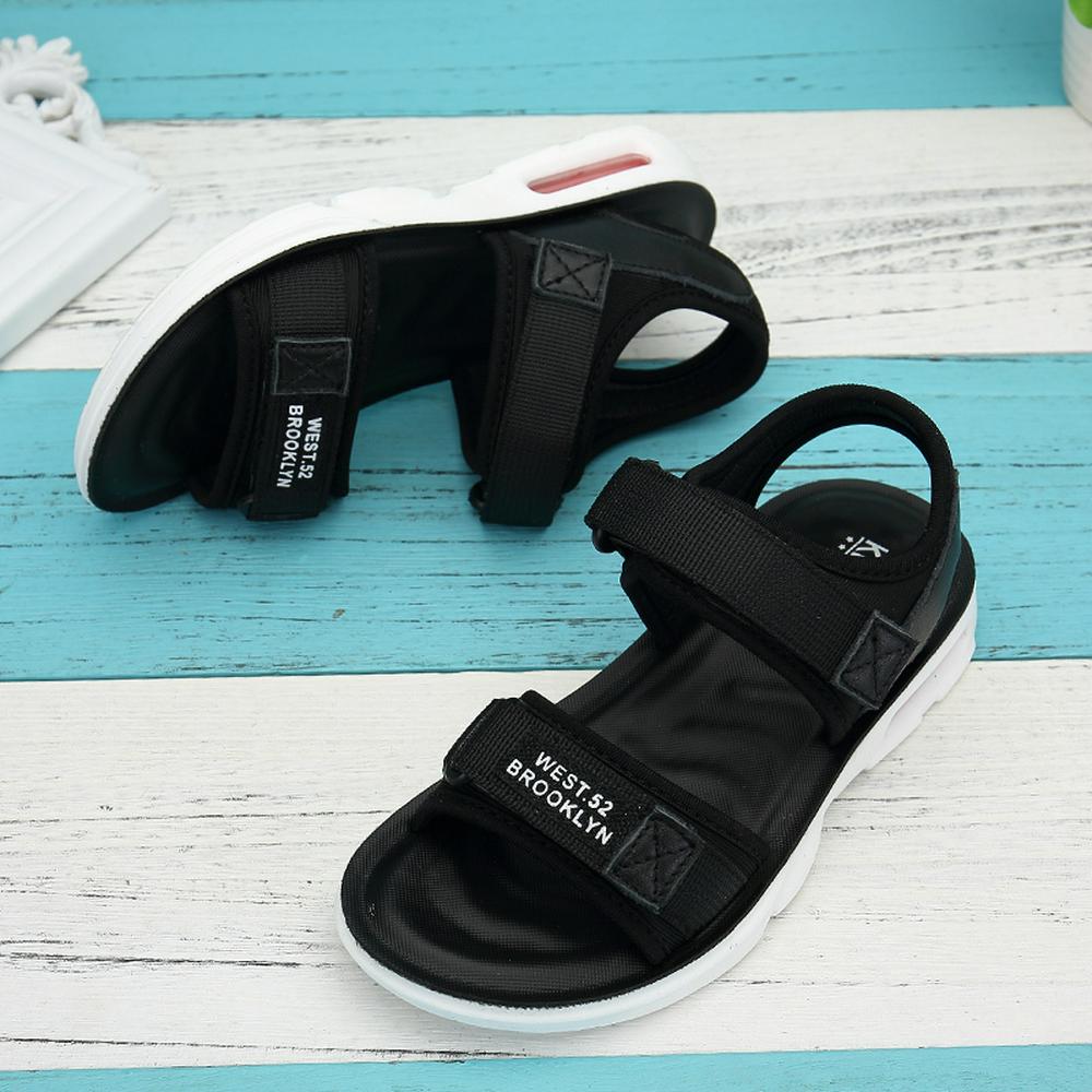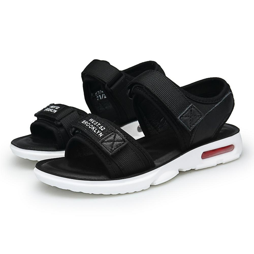 Boy's Open Sandals Non-slip Two-strap Beach Shoes Size 26 to 37(Black)